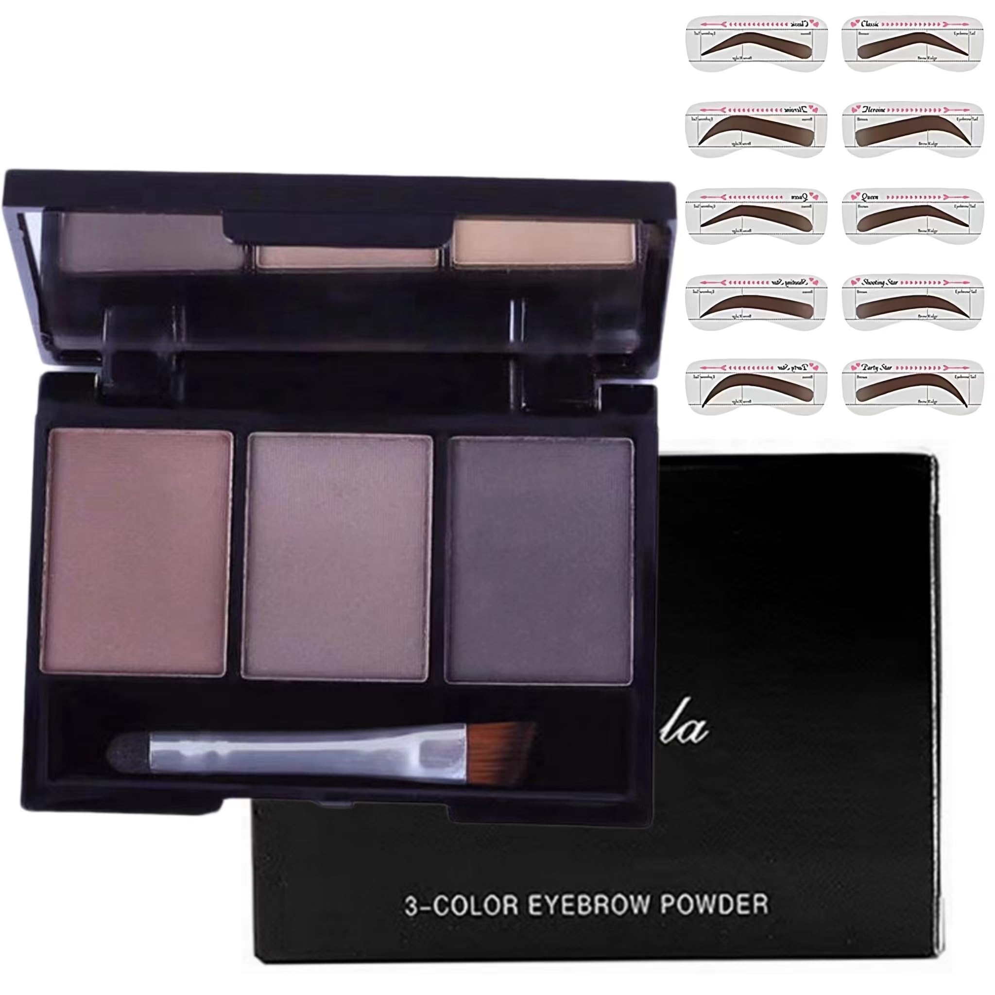 Polvo de cejas, maquillaje de paleta de cejas de 3 colores para mejorar las cejas, polvo de color de cejas con 10 plantillas de ce