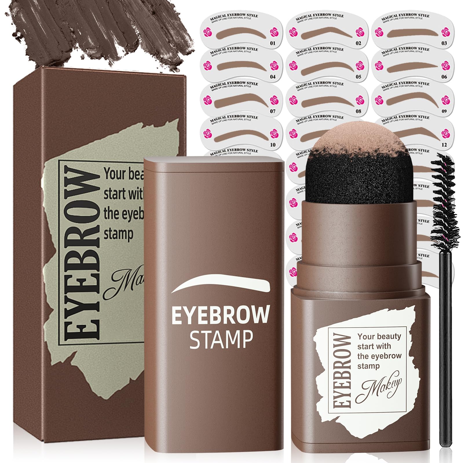 Sello de cejas para principiantes para crear una ceja natural e impermeable que dura todo el día con cepillo para cejas (marrón me