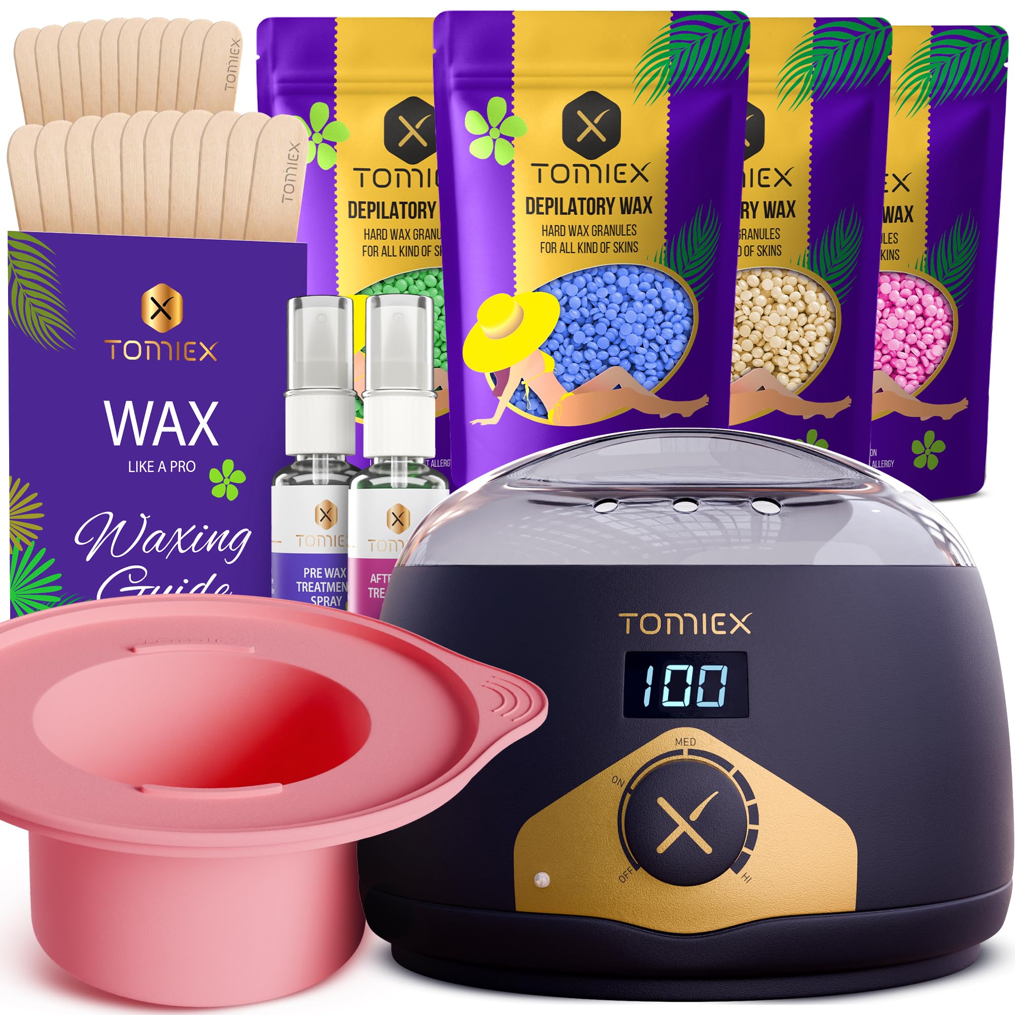 PODOY Mini calentador de cera: pantalla intercambiable, portátil para depilación con 100 varillas de cera, kit de cera antiadheren