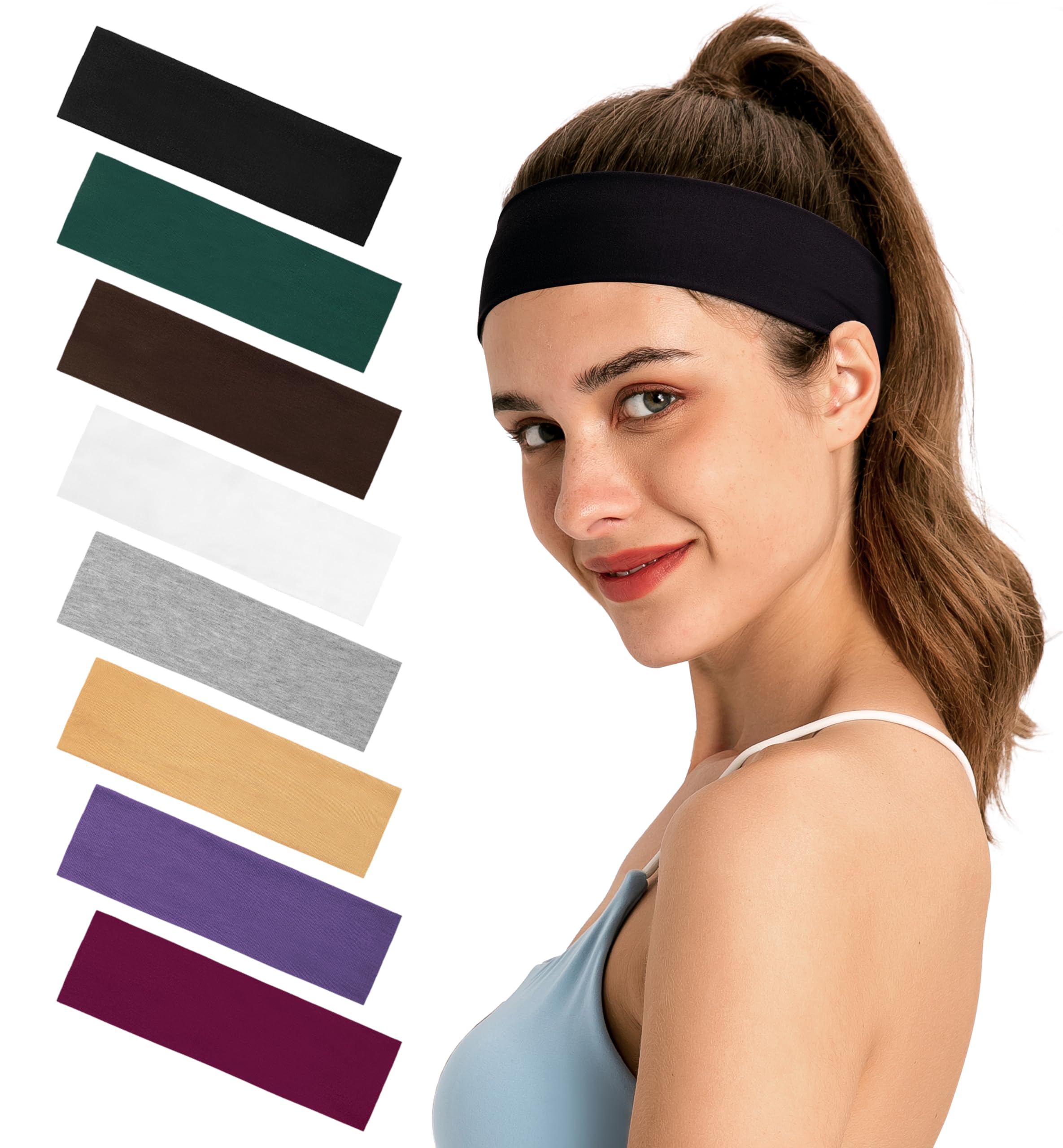 Diademas para mujer, paquete de 8 diademas vibrantes para yoga y deportes, bandas elásticas de algodón antideslizantes para el cab