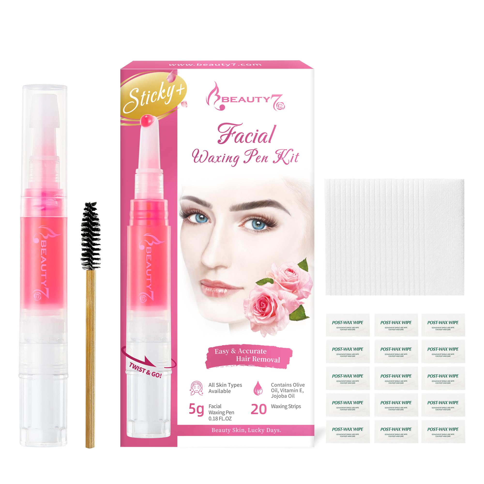 Beauty7 Kit de cera adhesiva para cejas, kit de depilación facial, depilación facial para labios superiores, mejillas y barbilla,