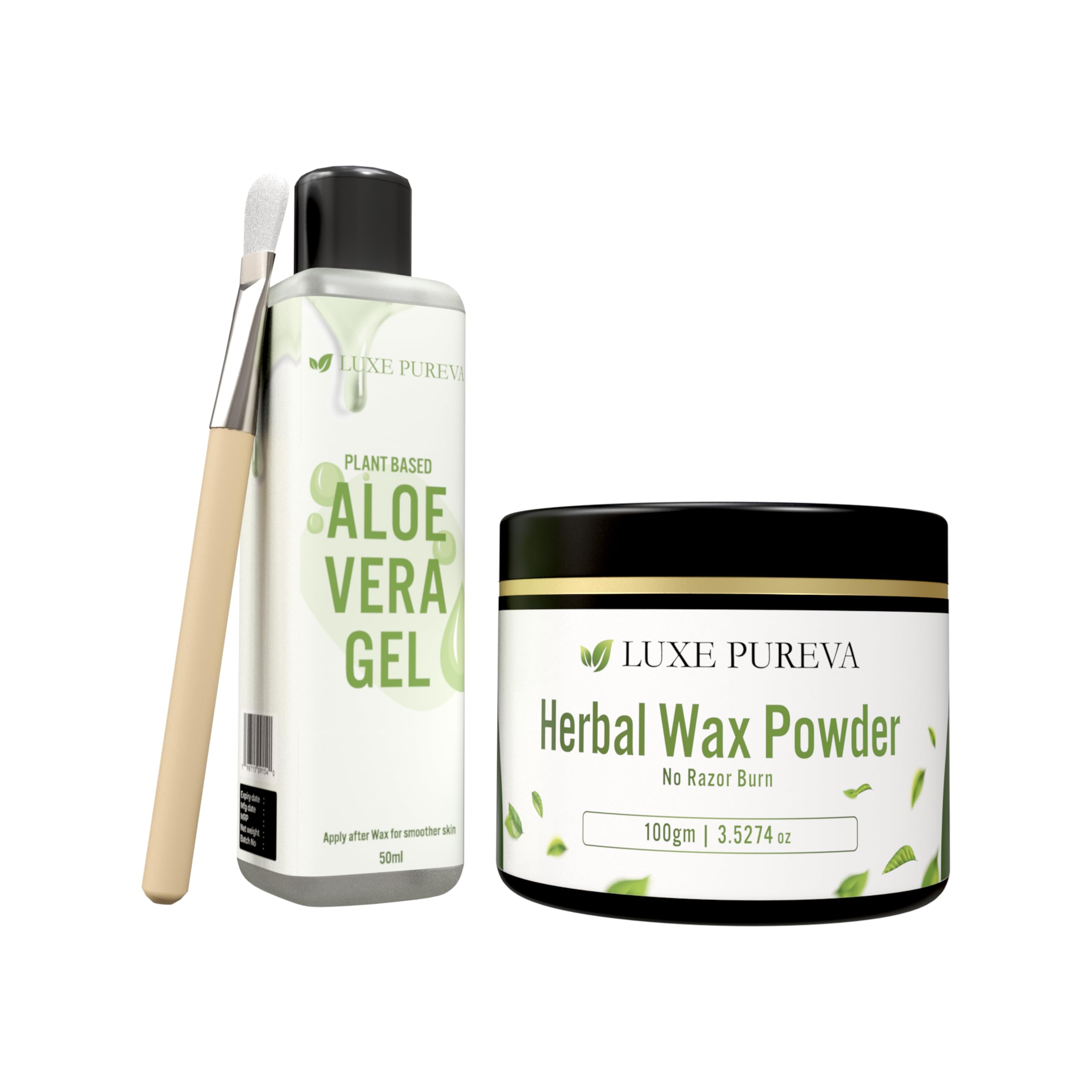 LuxePureva – Kit de depilación a base de hierbas (polvo de cera herbal, 3.52 onzas con cepillo aplicador y gel de aloe vera, 1.7 f