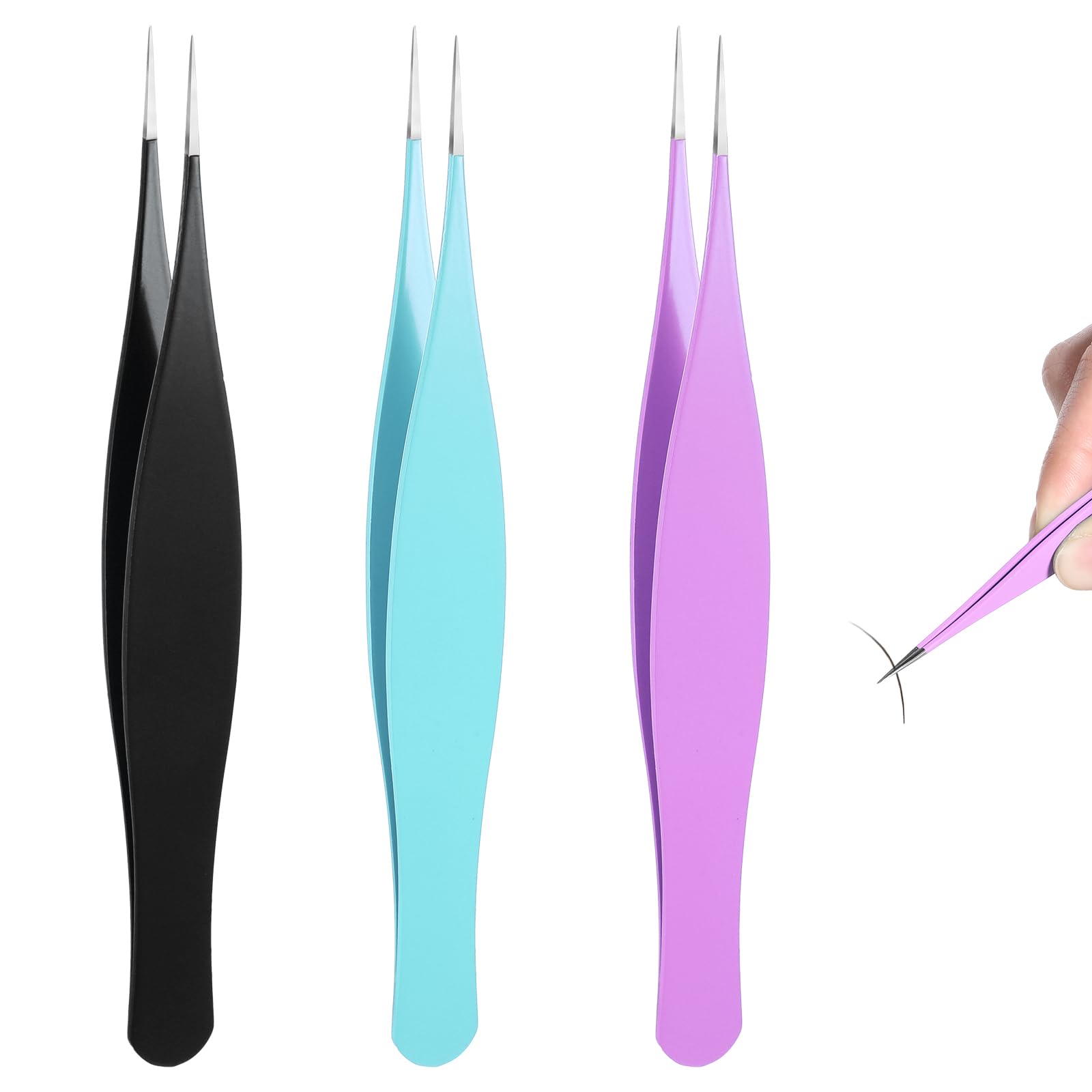 3 pinzas puntiagudas, pinzas para removedor de vello encarnado, pinzas puntiagudas súper afiladas (azul oscuro, azul claro y negro