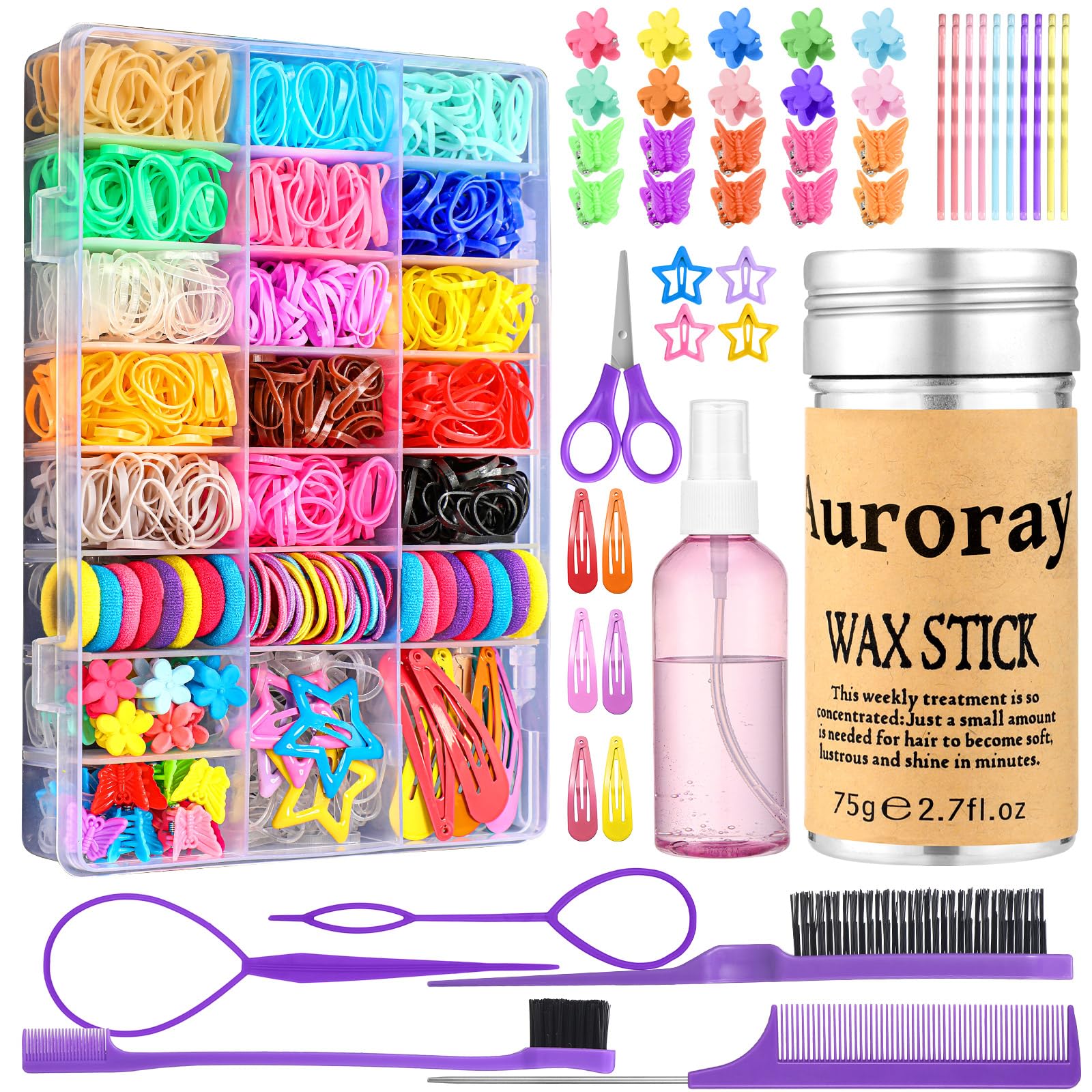 auroray Accesorios para el cabello para niñas, 1698 piezas de bandas de goma para el cabello con lazos elásticos para el cabello,