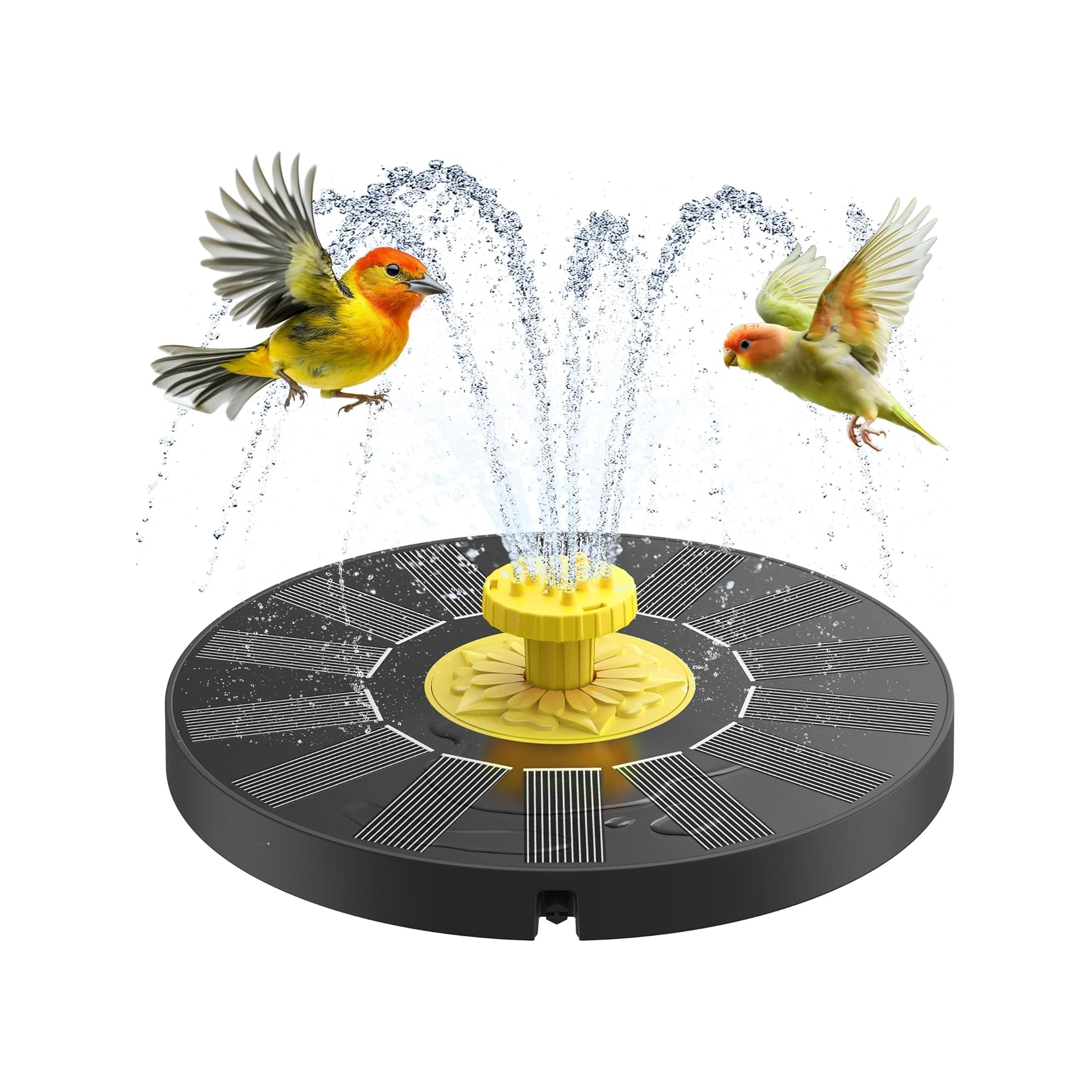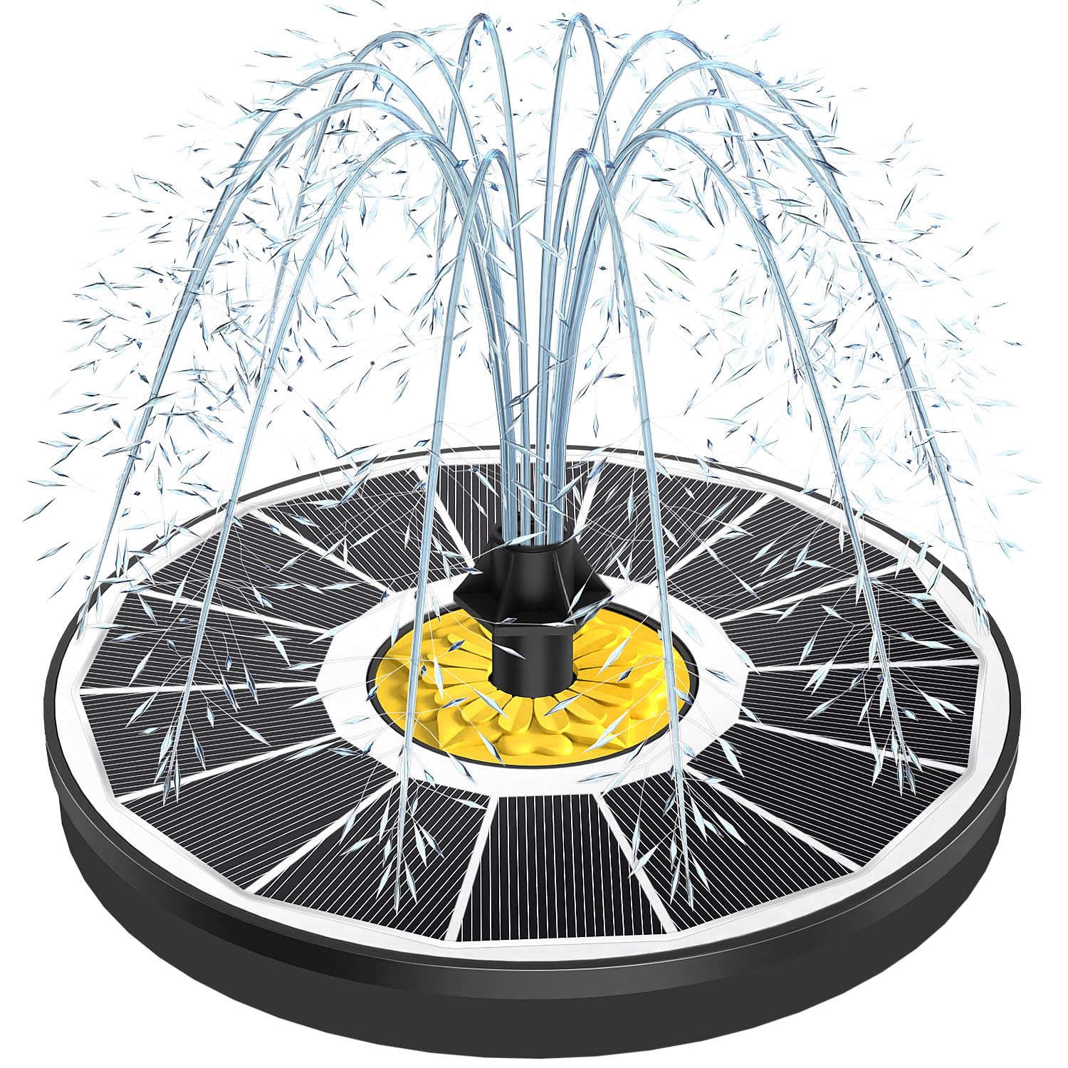 Fuente solar de baño para pájaros, bomba solar sin batería con 7 boquillas y 4 varillas fijas para jardín, estanque, piscina, pati