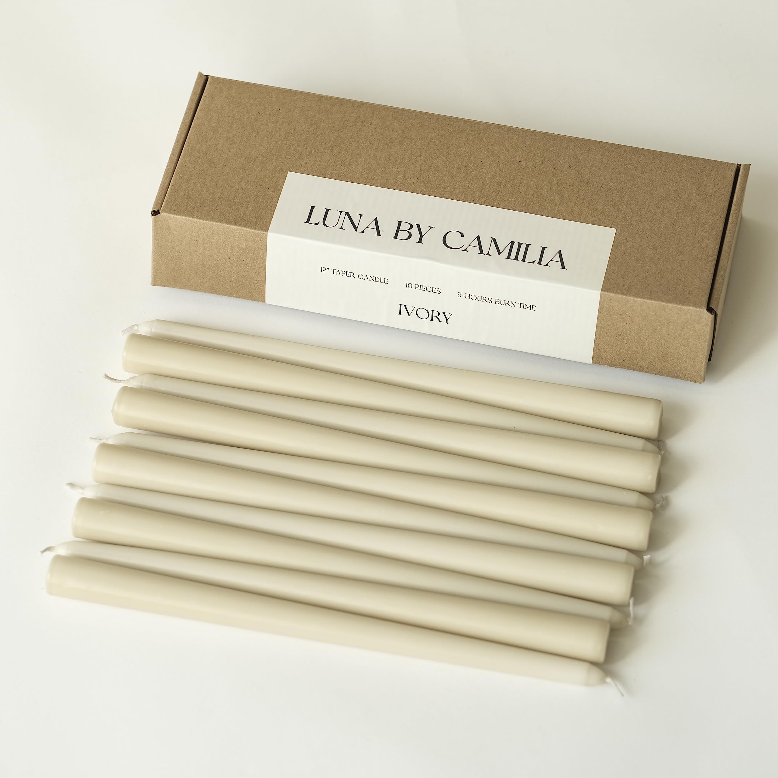 10 velas cónicas Luna by Camilia de 12 pulgadas, velas cónicas para bodas y eventos (marfil)