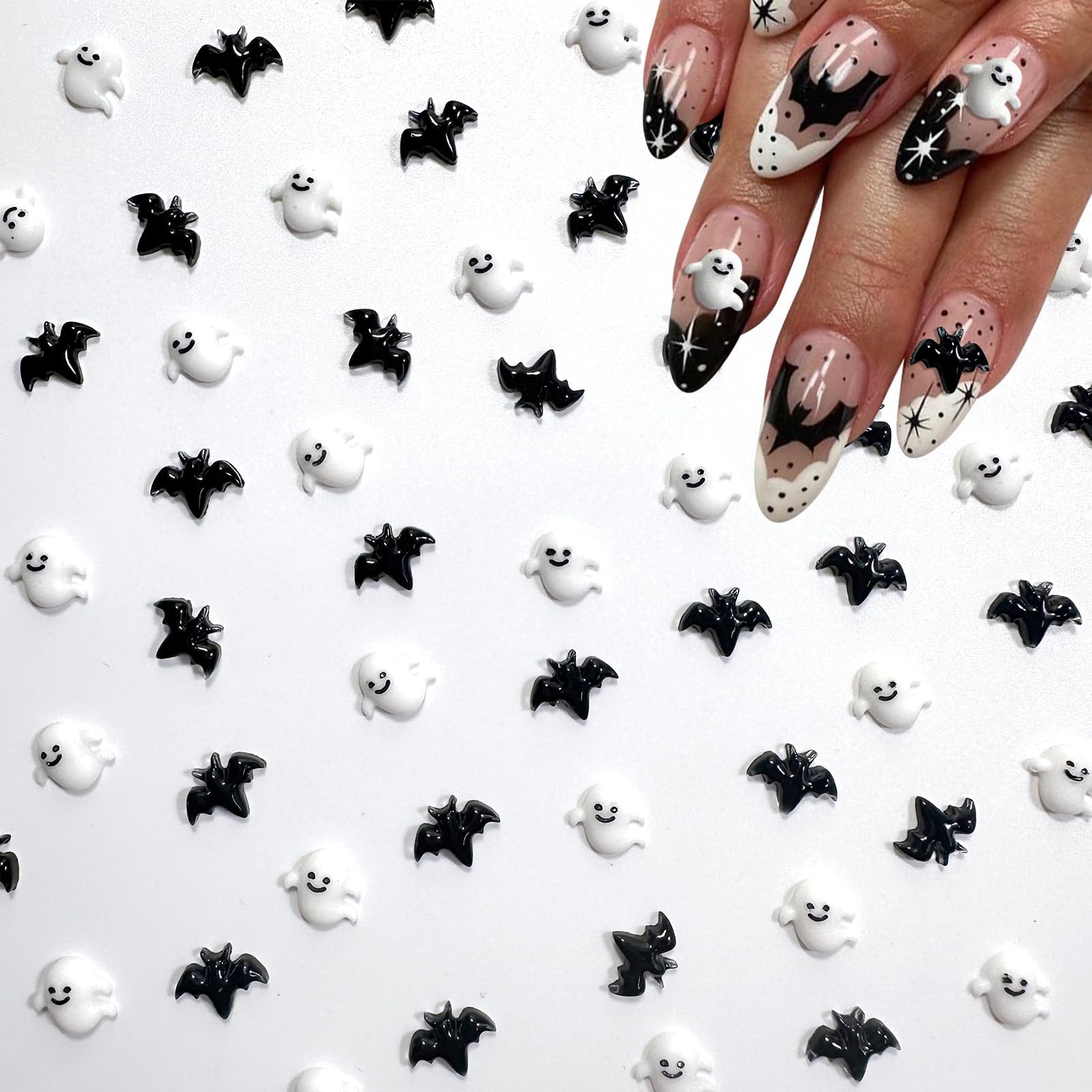 Juego de 60 piezas de dijes de arte de uñas de Halloween de resina 3D gótica para Halloween, accesorios de arte de uñas, fantasma,