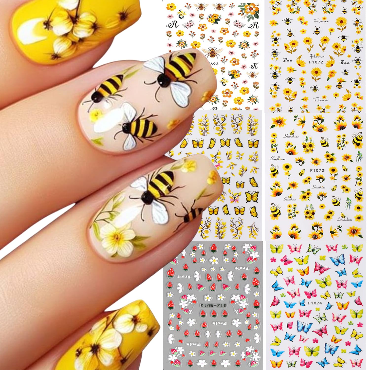Calcomanías de uñas de flores de primavera y verano, calcomanías de abeja, mariposa, uñas, diseños autoadhesivos, calcomanías de a