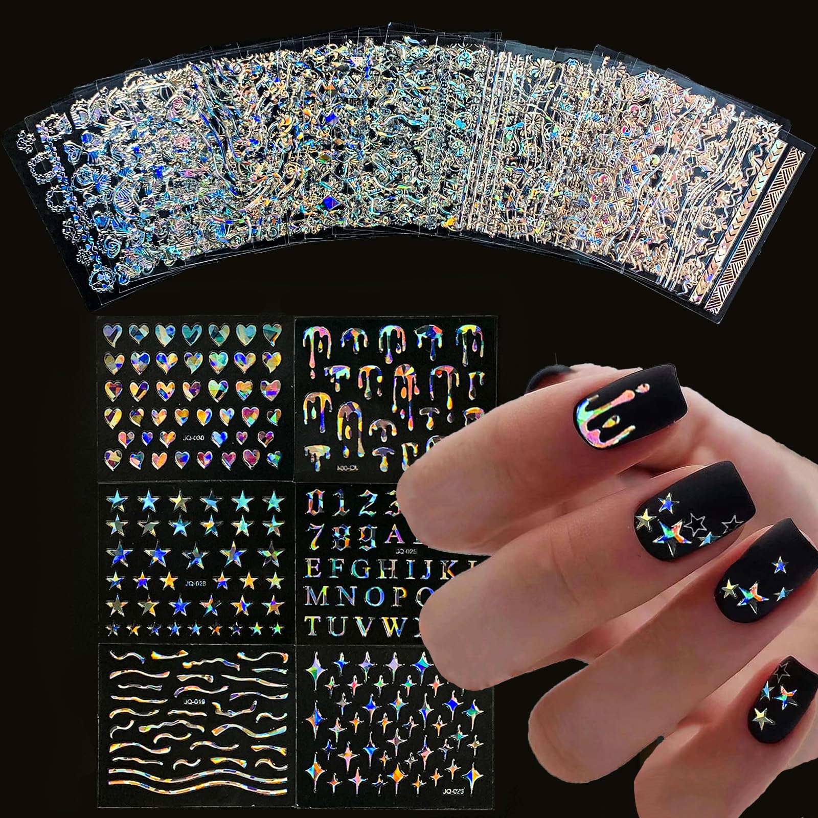 JMEOWIO 9 hojas de calcomanías holográficas de Aurora para arte de uñas, diseño de luna, estrella, autoadhesivas, suministros de u