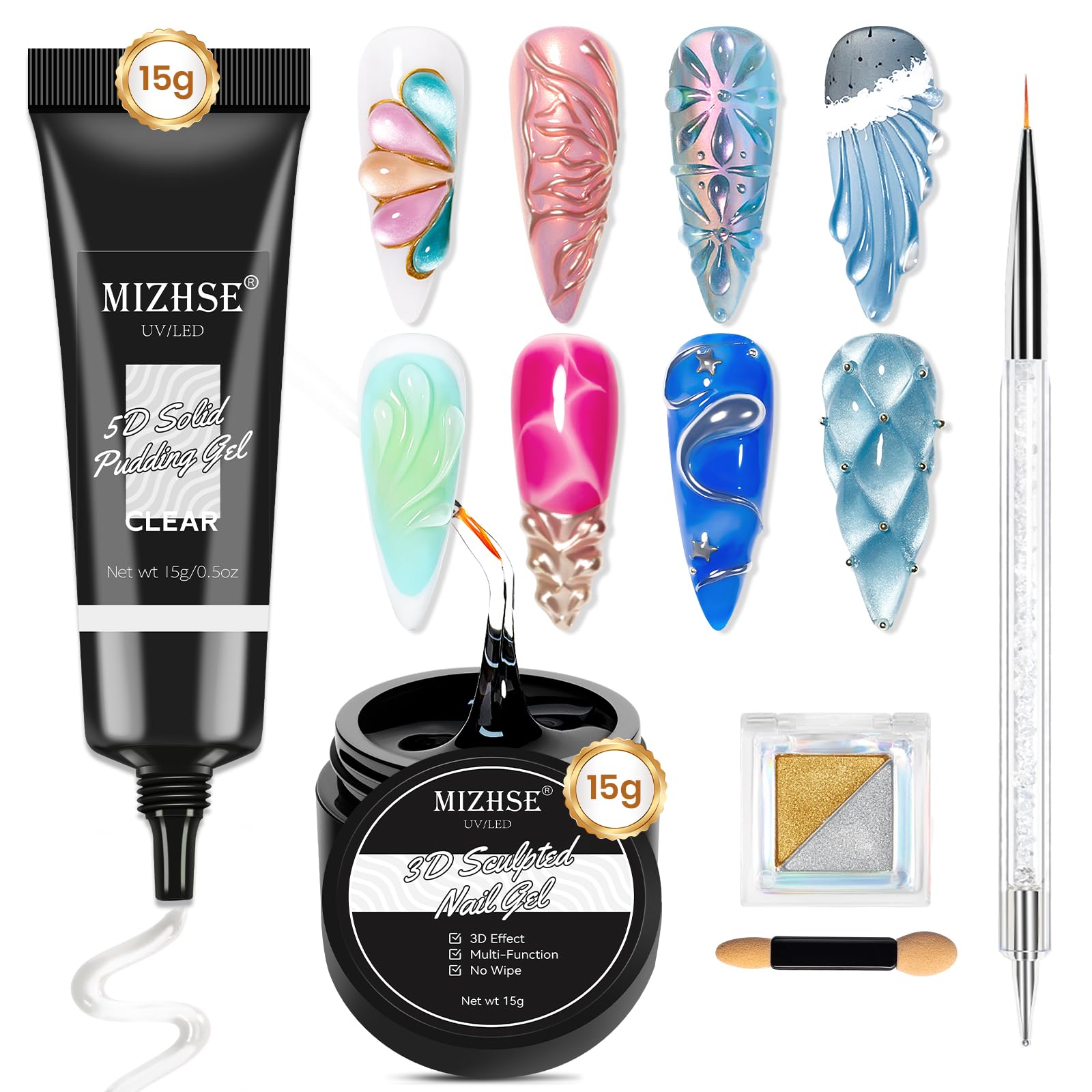 MIZHSE Gel de uñas 3D y gel de pintura 3D, escultura de uñas 3D, 0.51 onzas (0.53 oz), no se limpia, esmalte de gel de remojo UV p