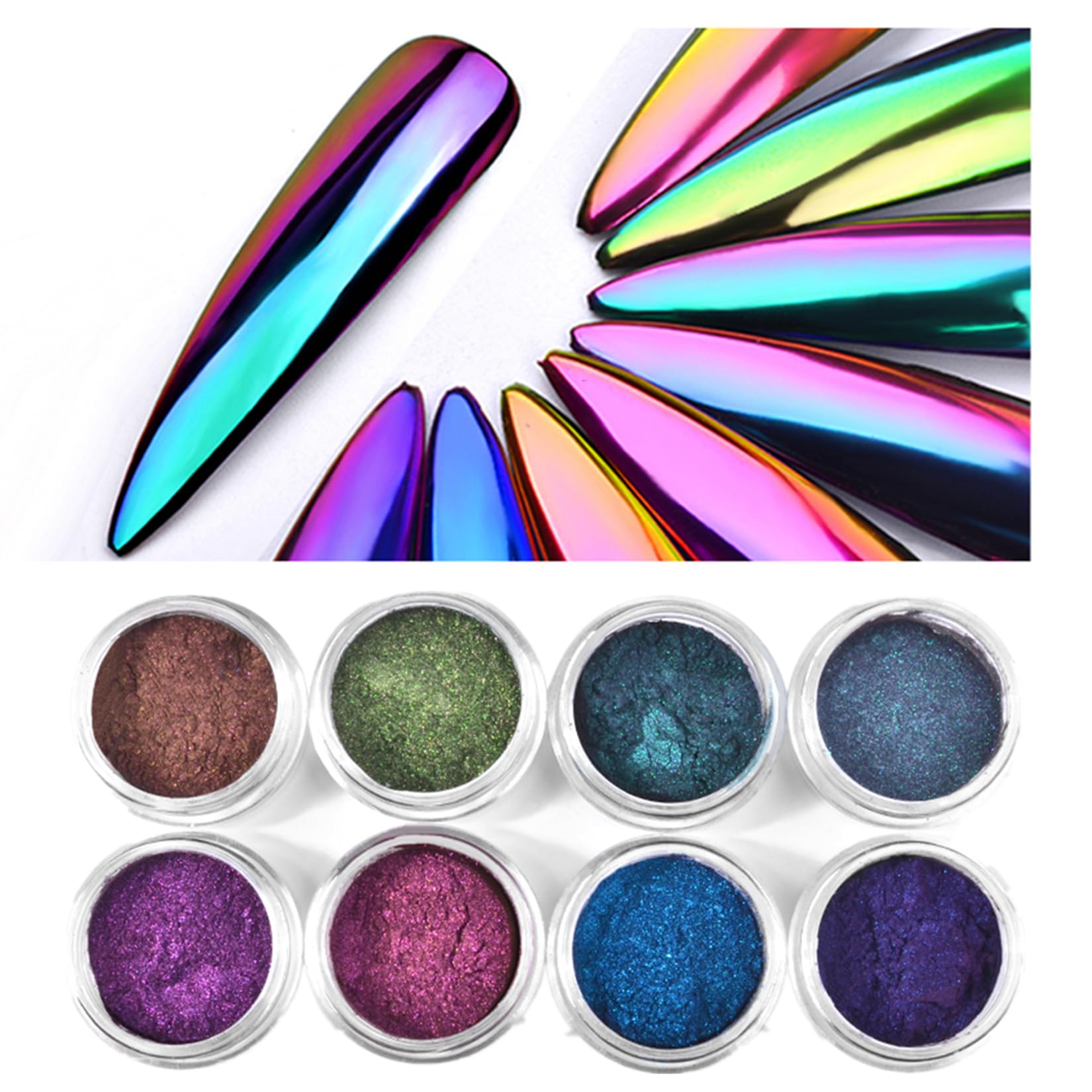 PhantomSky Polvo de camaleón óptico con purpurina cromada para uñas, 8 colores de espejo mágico, pigmentos de unicornio, accesorio