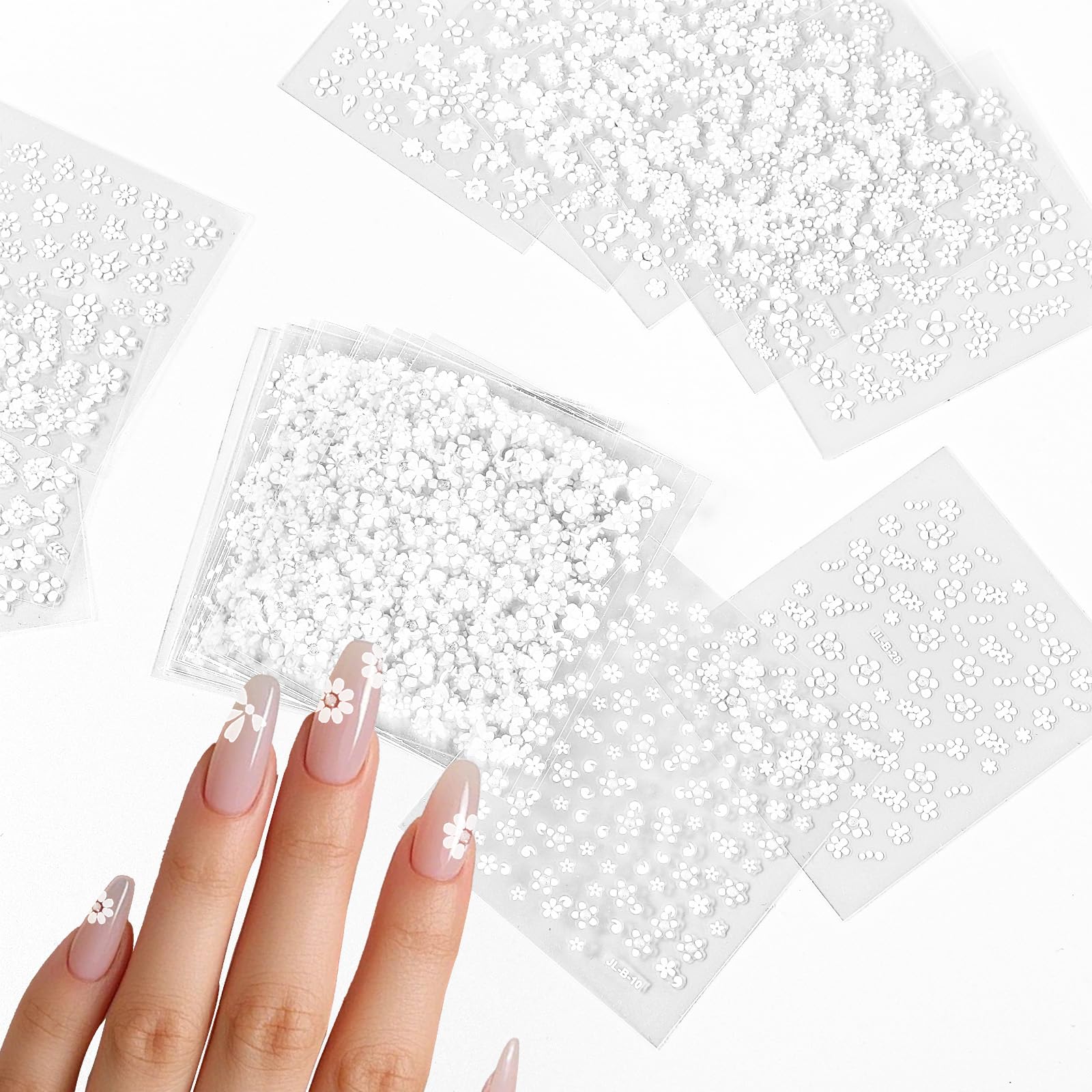30 hojas de calcomanías de arte de uñas de flores blancas 3D autoadhesivas con flores blancas para arte de uñas, primavera y veran