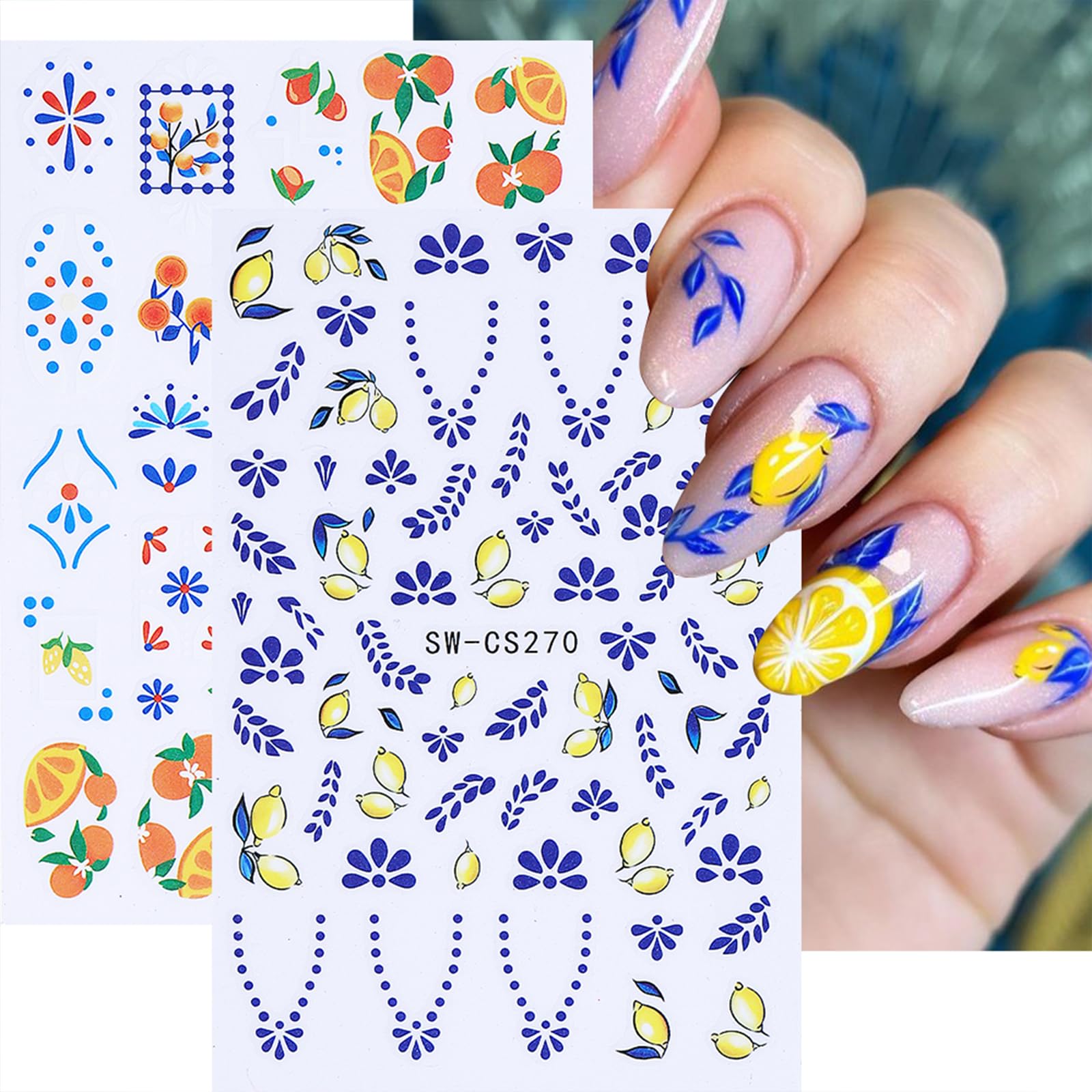 Calcomanías de arte de uñas de verano 3D, calcomanías autoadhesivas para uñas, naranja, limón, fresa, arándano, diseños de uñas, d