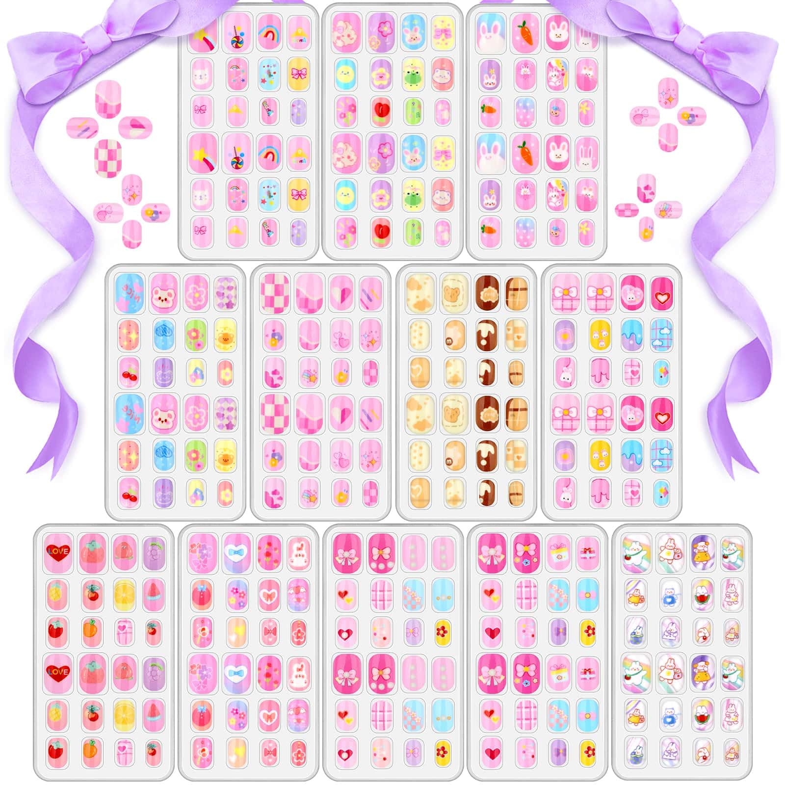 Acejoz – Juego de 288 uñas postizas autoadhesivas a presión para niñas y niños de 8 a 12 años