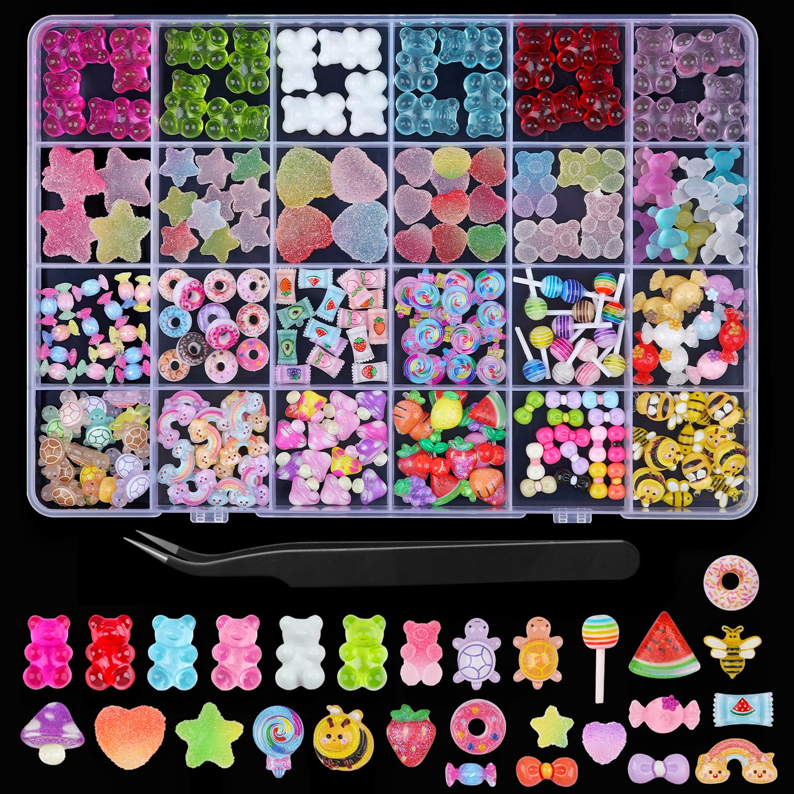 Kit de 230 dijes de uñas kawaii, resina 3D, colores mezclados, flores, corazón, estrella, arco iris, caramelo, oso, abeja, fruta,