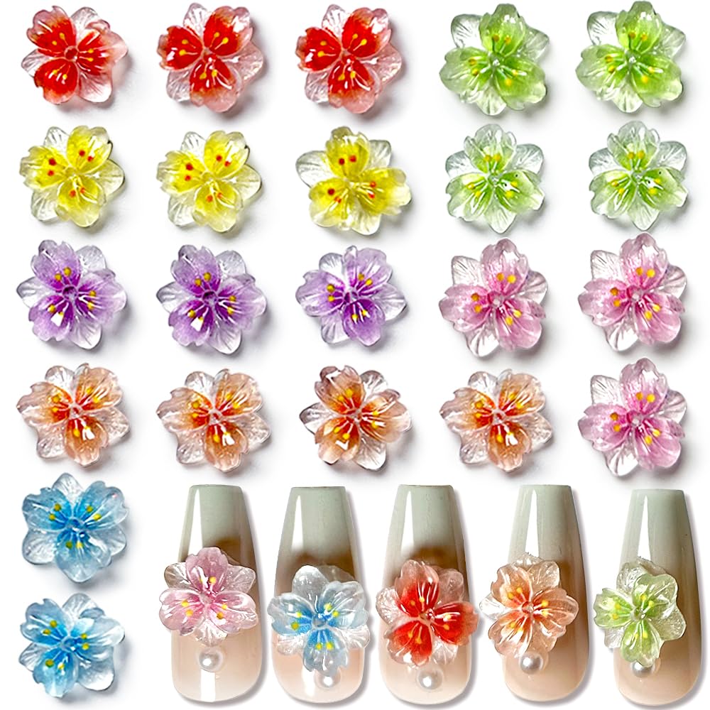 Dijes de flores para uñas, resina 3D, pétalos coloridos para uñas acrílicas, perlas doradas, diamantes de imitación de uñas, dijes