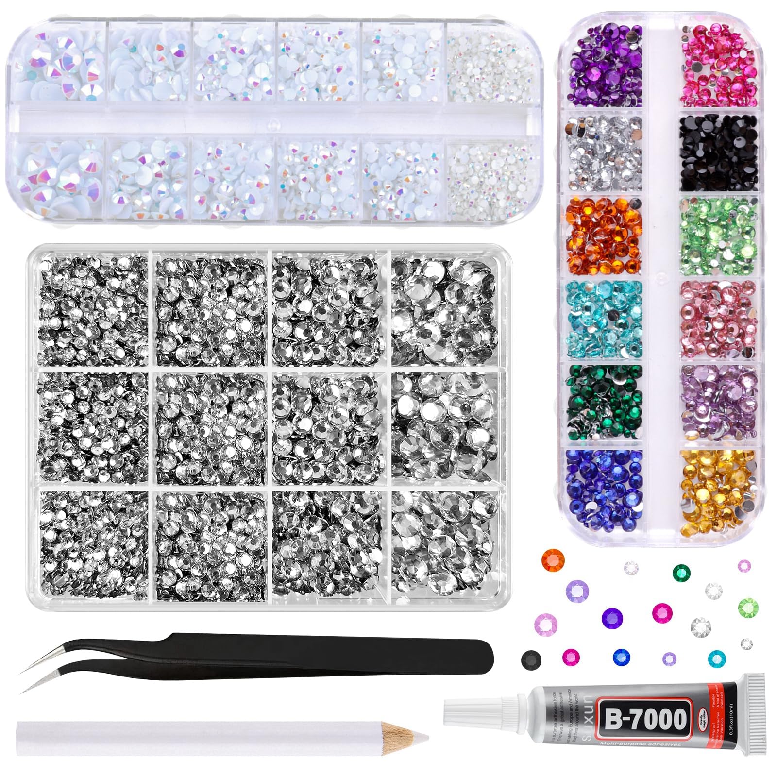 ASTARON Diamantes de imitación de resina blancos y coloridos para manualidades, piedras preciosas de resina mixta de 0.079 a 0.236