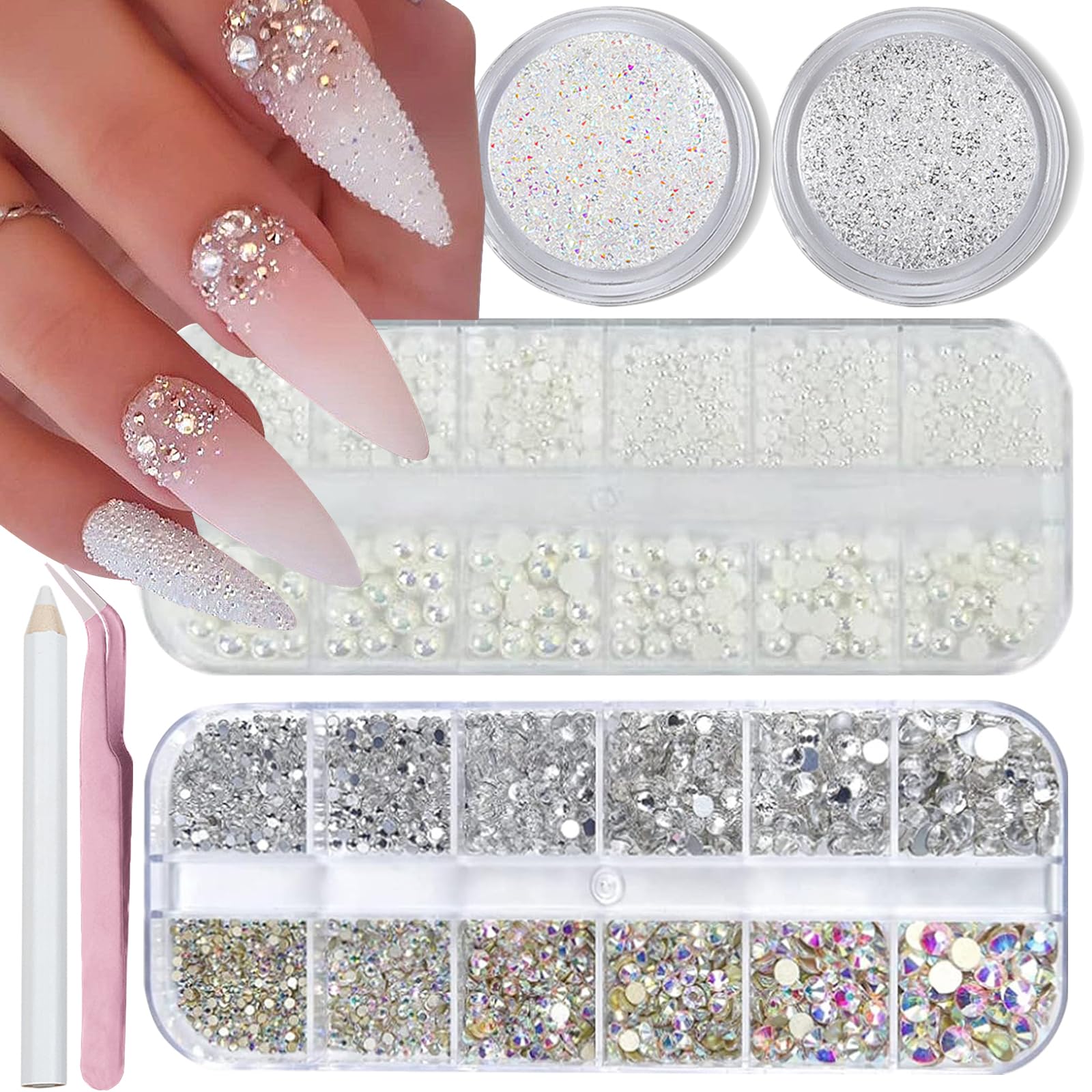 Aodse 6000 perlas de uñas para arte de uñas, media perla plateada para manualidades, maquillaje de ojos de cara, dijes, manualidad