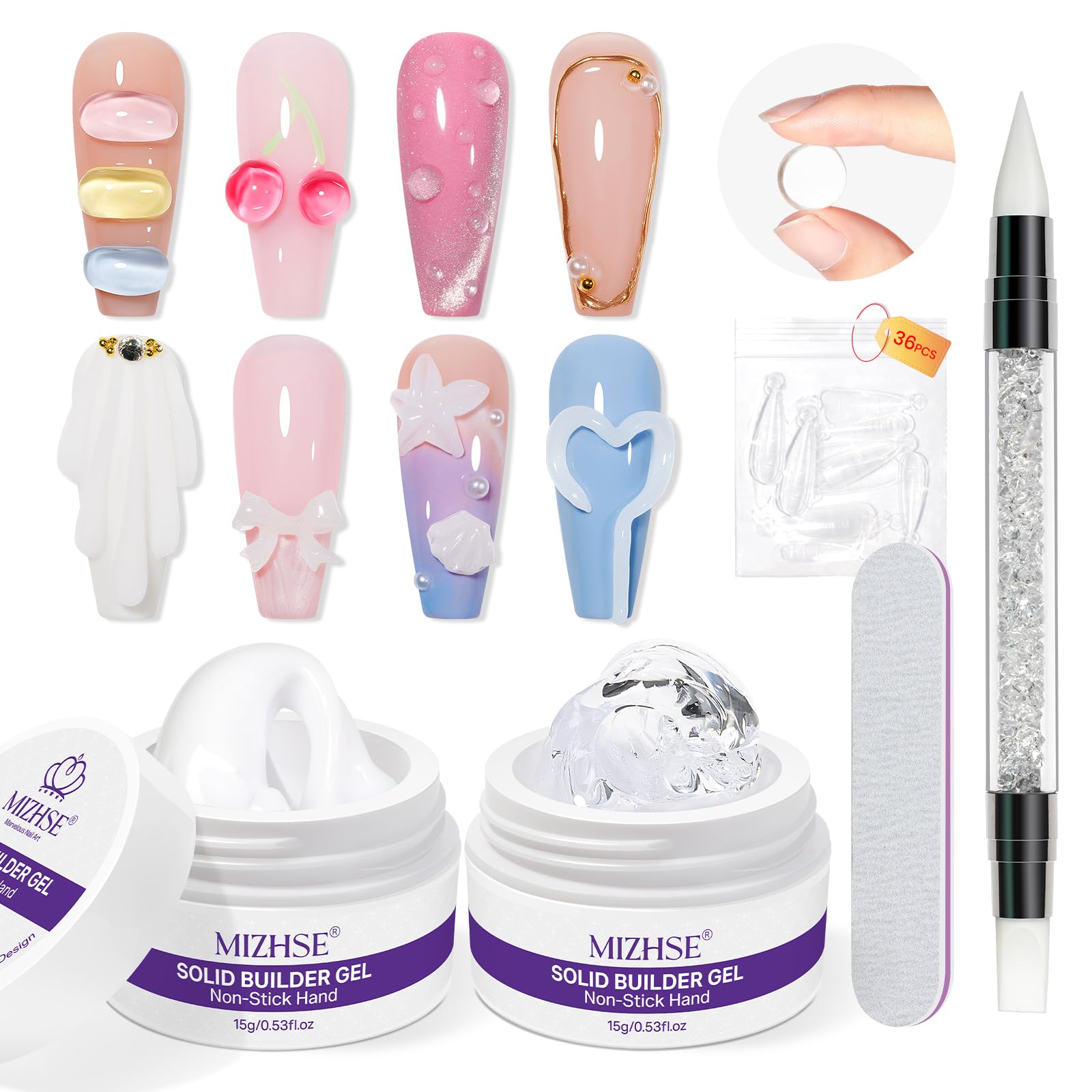 MIZHSE Gel constructor sólido para uñas, arte de uñas 3D transparente y blanco no pegajoso, gel duro para esculpir con bolígrafo d