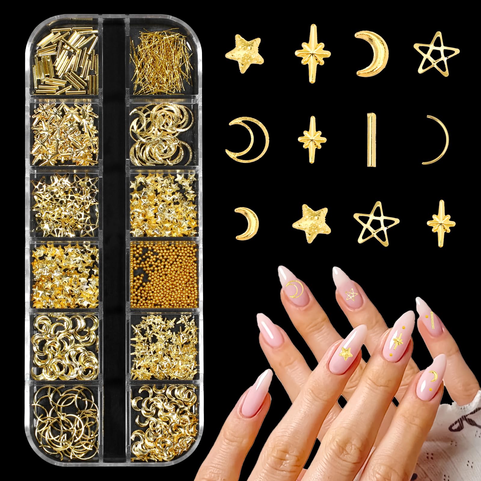 12 Styles Nail Charms 3D Gold Star Moon Mix Nail Decorations DIY Accessories Y2k Rhinestones Jewelry for Nails Art DIY Craft Charm