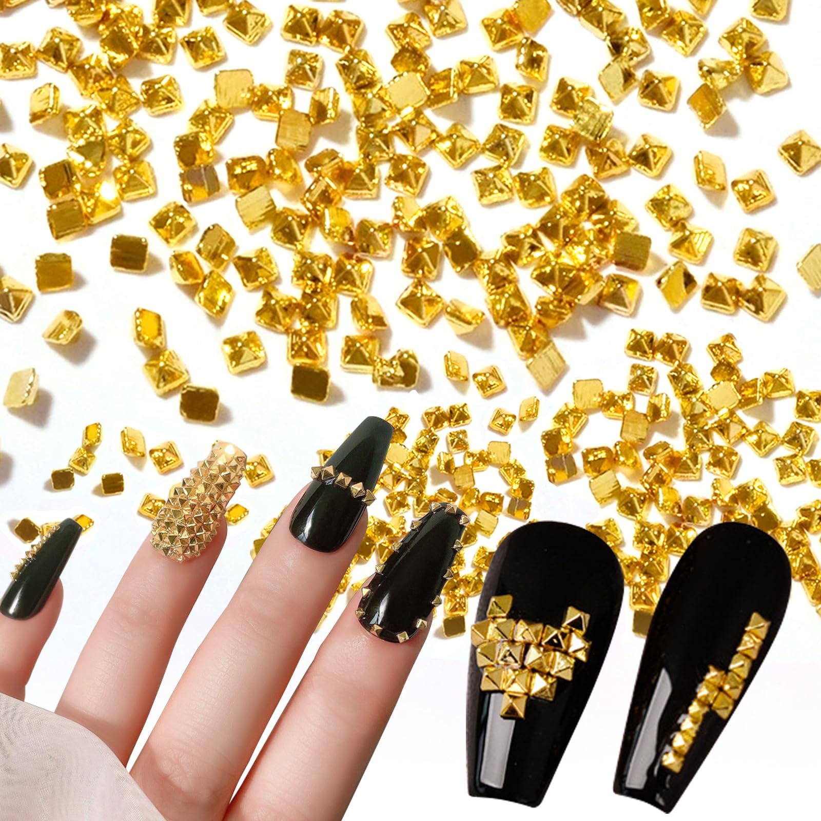 WOKOTO 600 piezas de dijes de uñas de pirámide punk dorado para uñas acrílicas, remaches de pirámide dorada 3D para uñas, dijes de