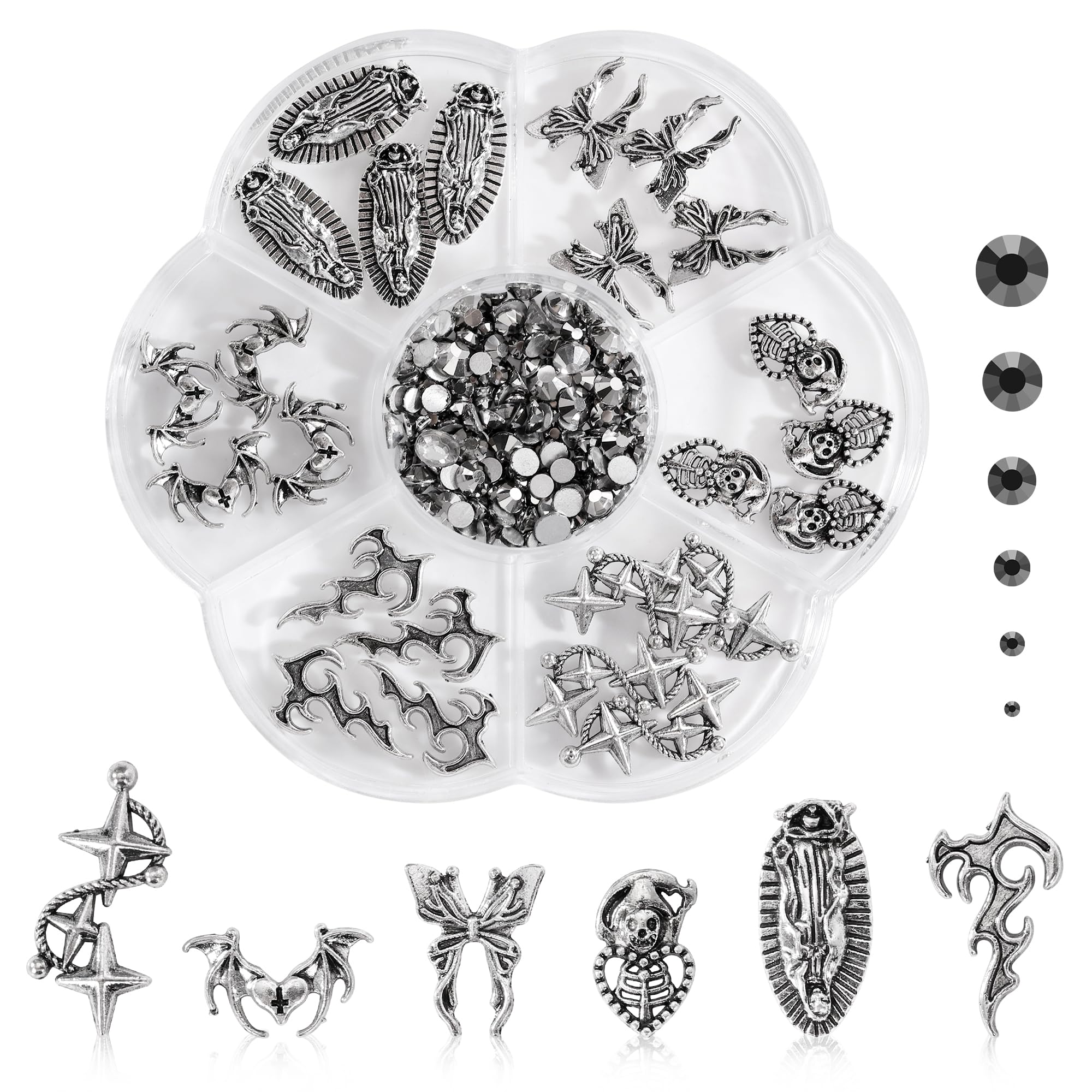 125 dijes de uñas de murciélago con cruz 3D de metal cromado dorado para arte de uñas, estilo vintage, gótico, retro, punk, maripo