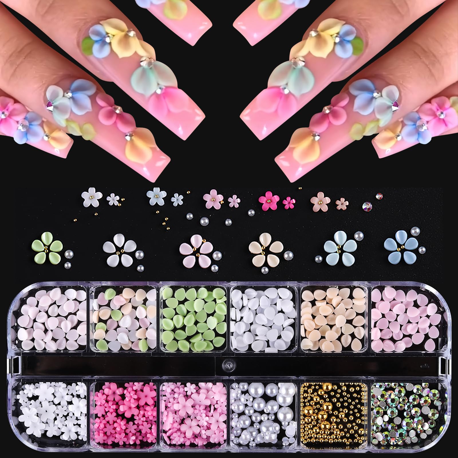 Dijes de uñas de flores de resina 3D coloridos pétalos para uñas acrílicas, lindas flores florales y perlas, decoraciones de uñas