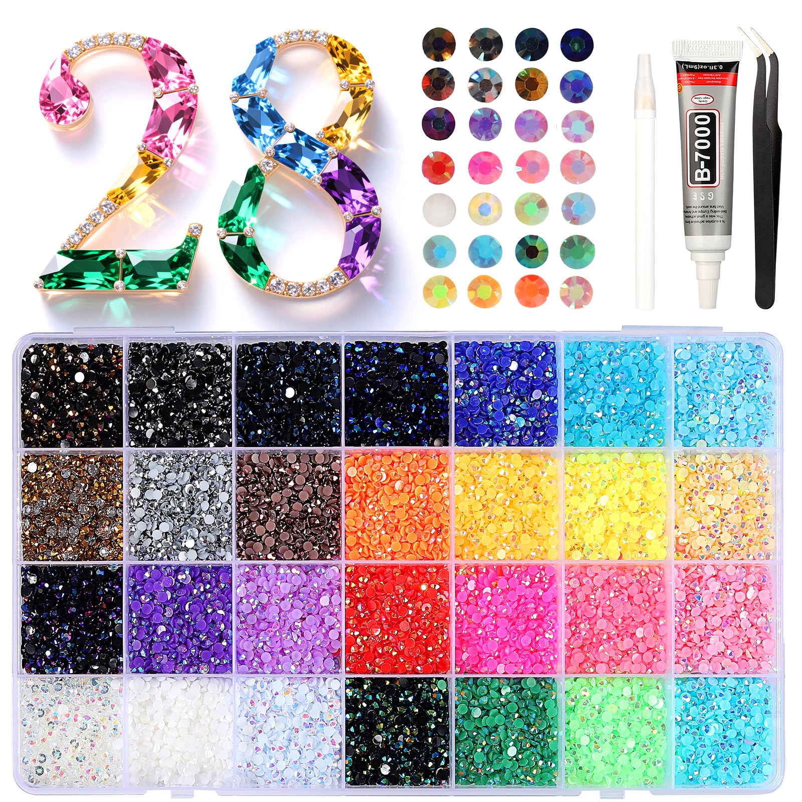 28000 unidades por caja de diamantes de imitación para arte de uñas, 28 colores de 0.118 pulgadas (0.118 in), redondos, diamantes