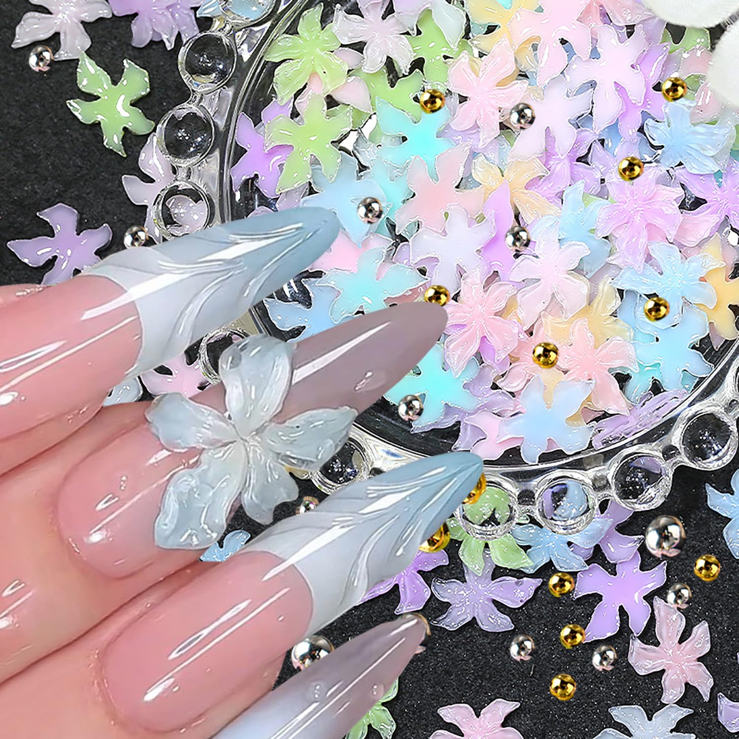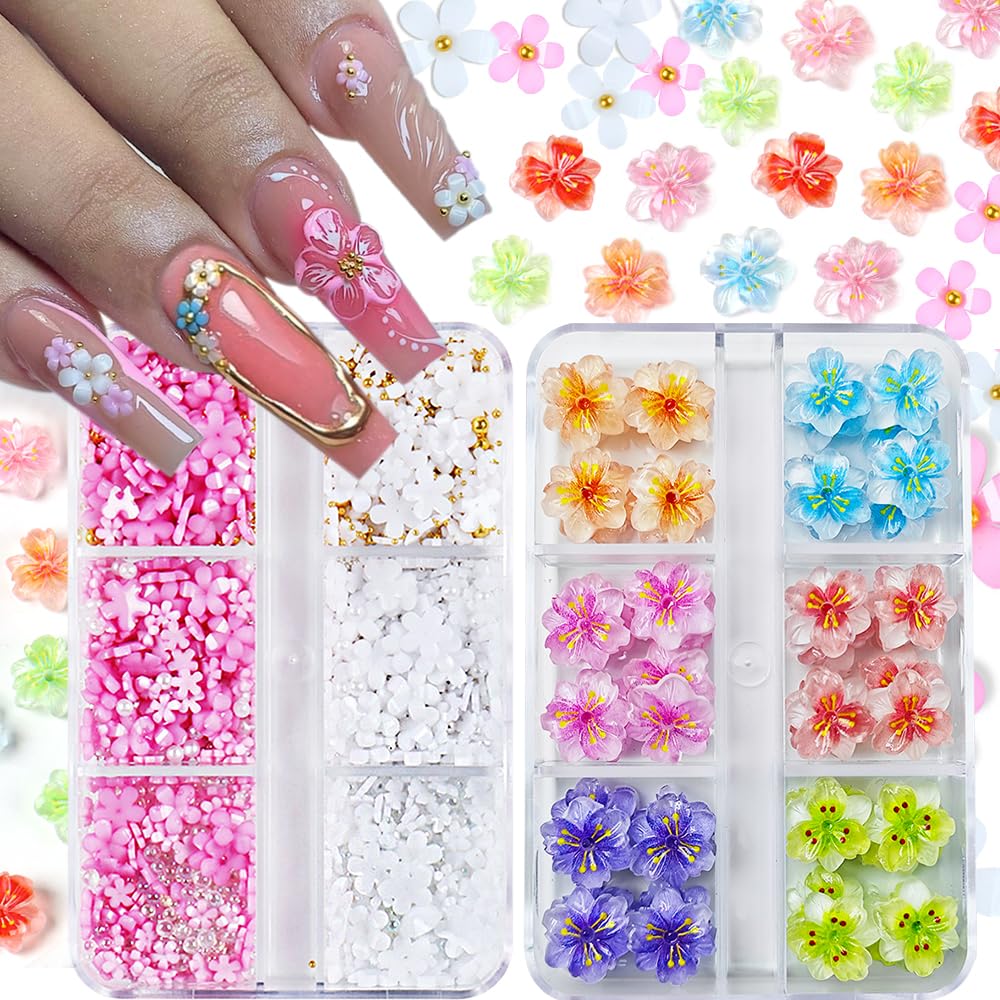 Juego de 42 dijes y gemas para uñas 3D, coloridas flores tropicales de cristal 3D para uñas + dijes de acrílico rosa y blanco con