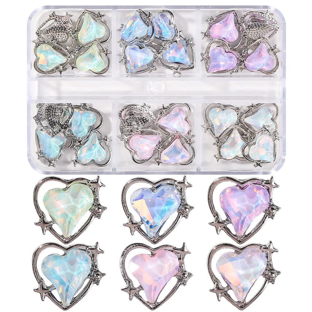 30 dijes de uñas kawaii, diamantes de imitación coloridos de corazón 3D, dijes de arte de uñas acrílicas lindas gemas de amor para