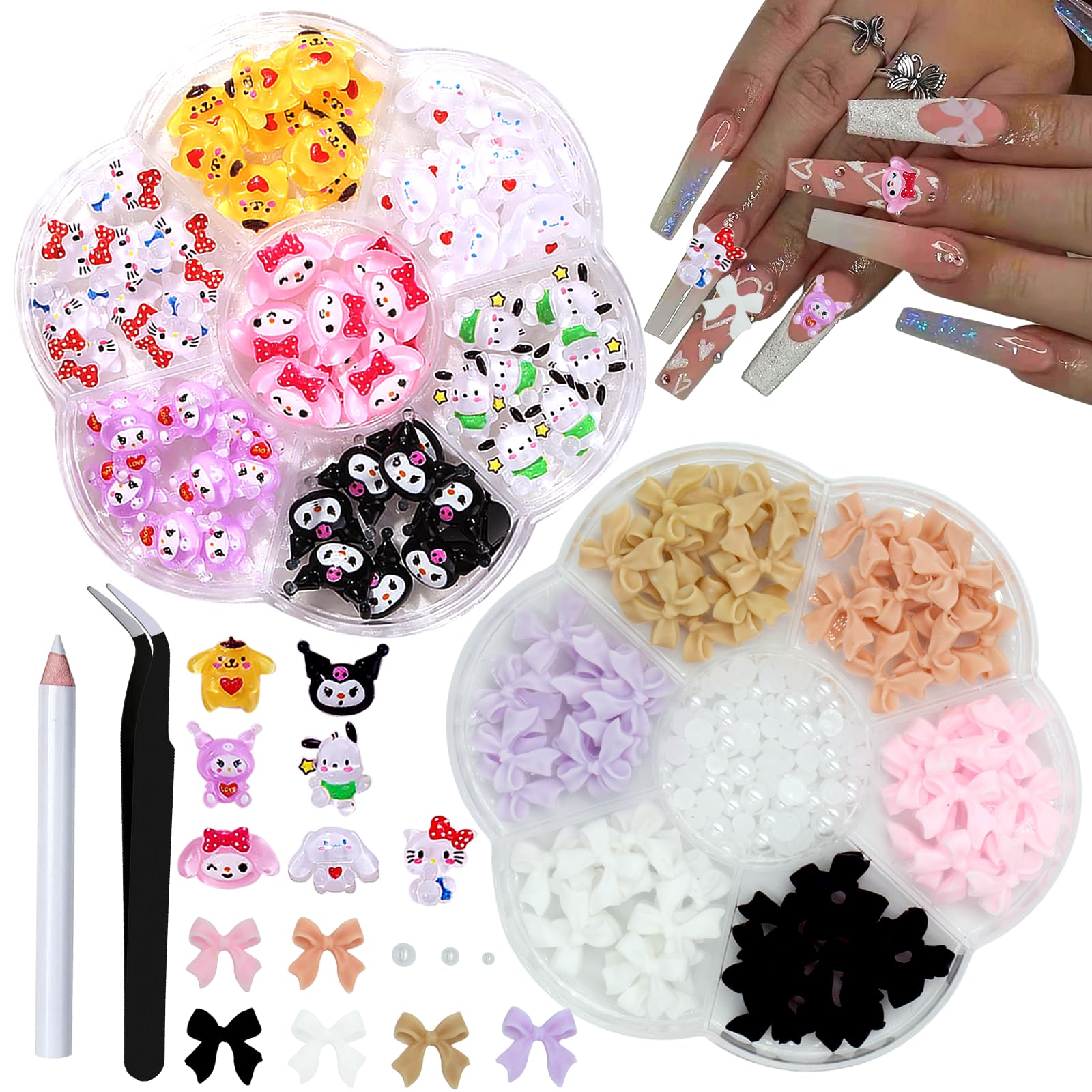 Abalorios de uñas kawaii, dijes 3D para arte de uñas, encantos Y2K de limo con lazo, perlas semicirculares para decoración de uñas