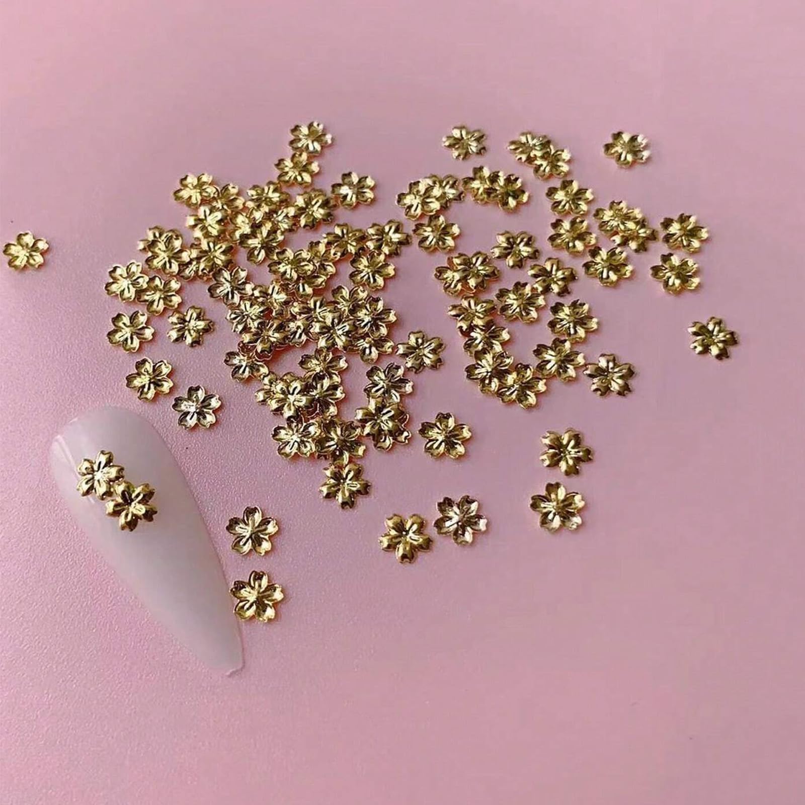 100 dijes de arte de uñas de flores doradas, bonitos diseños de flores doradas de aleación, accesorios de uñas de color sólido con