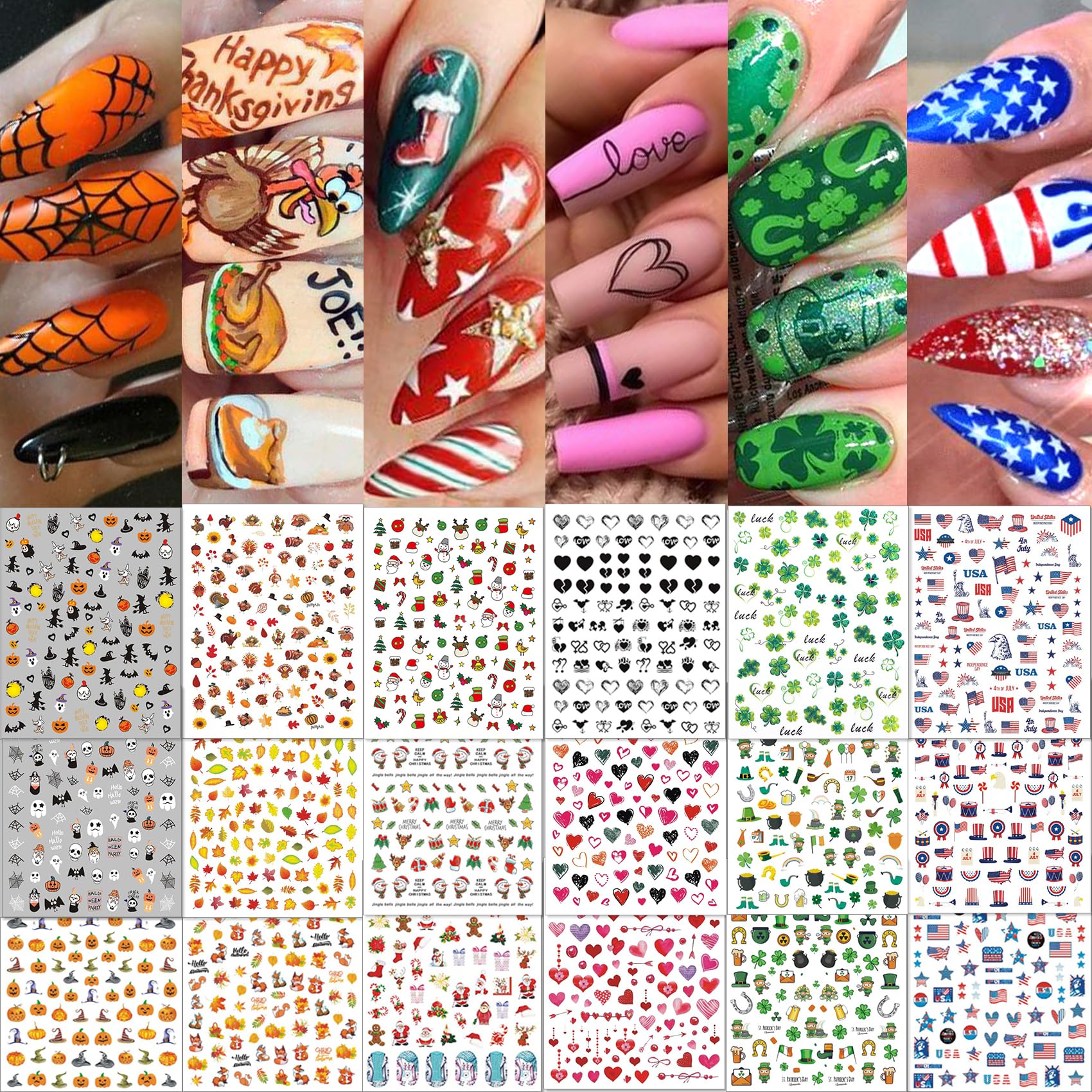 TailaiMei 30 hojas de calcomanías de arte de uñas, paquete variado de Navidad para el día de San Valentín, Halloween, otoño, calco