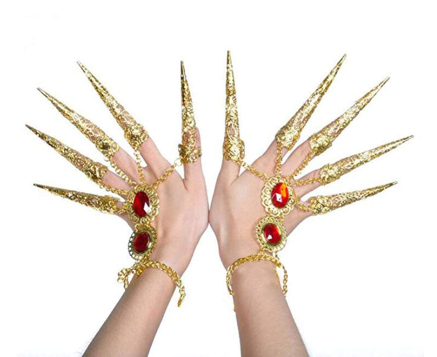Suoirblss 2 pulseras egipcias gitanas de moda para mujer con uñas de dedo de oro indio con uñas de dedo para disfraces, Metal