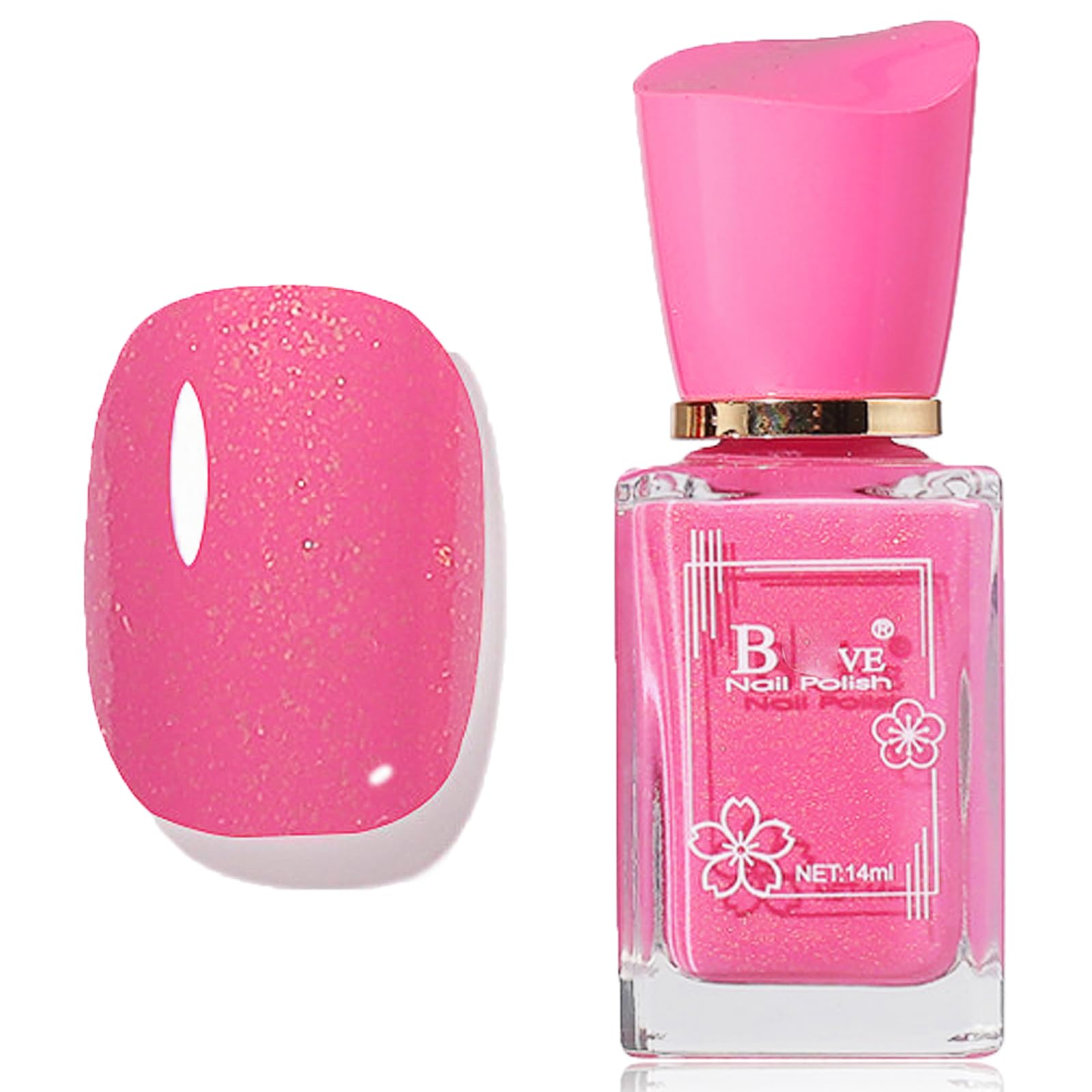 Esmalte de uñas Pink Pearl, esmalte de uñas con purpurina rosa intenso, secado al aire, esmalte de uñas de gel con purpurina de al