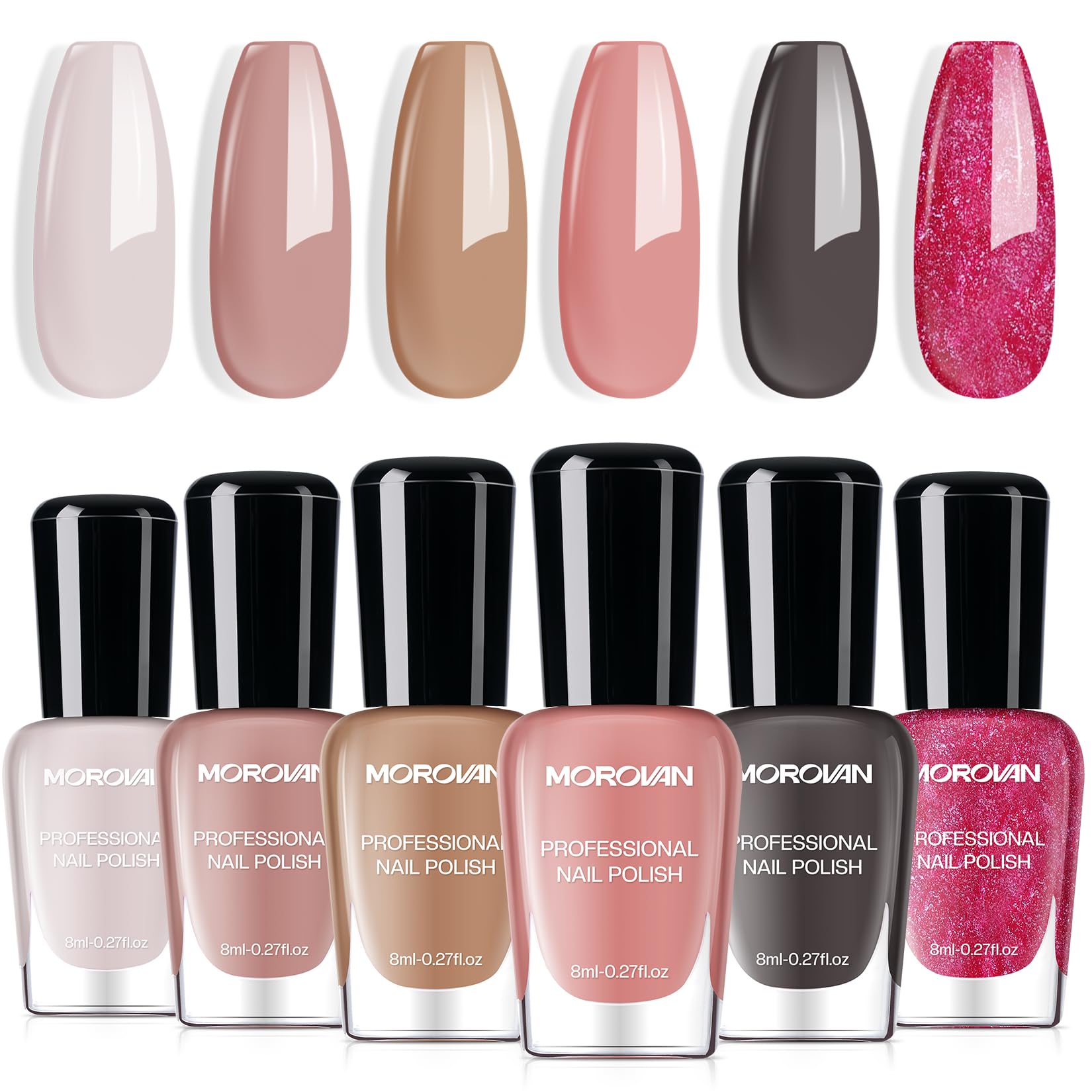 Morovan Juego de esmaltes de uñas: paquete de esmalte de uñas regular de secado al aire rosa nude de 0.25 onzas, kit de esmalte de