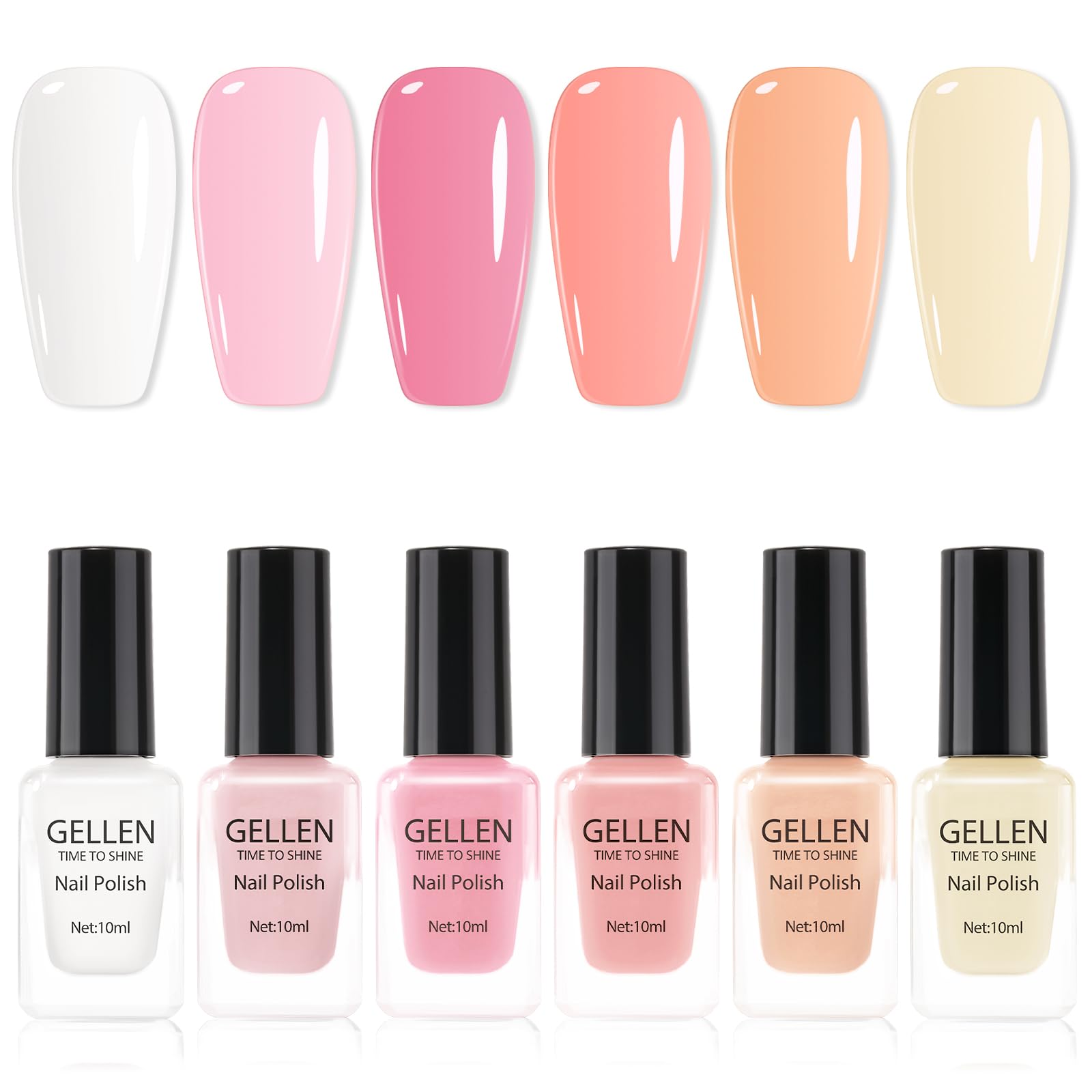 GELLEN Esmalte de uñas nude, secado rápido al aire natural, esmalte de uñas regular tradicional, 6 colores nude, rosa, blanco, jue