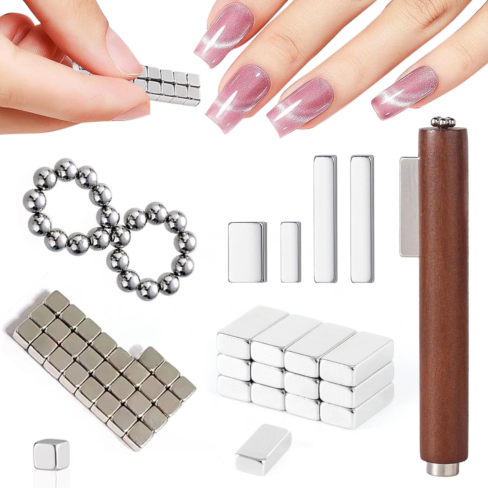 Juego de 64 imanes de uñas de ojo de gato para uñas, imán magnético de esmalte de uñas, mini cuentas de bloques 3 en 1, imán de oj