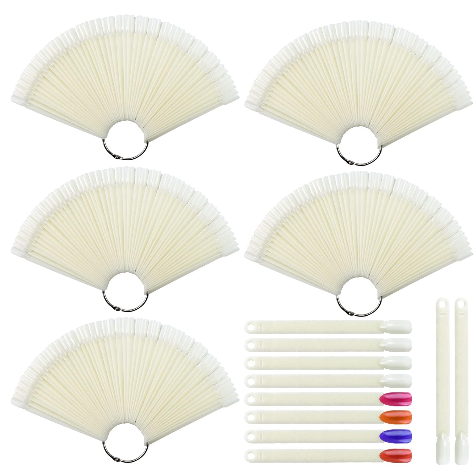 2 juegos de 100 puntas en forma de abanico de plástico para arte de uñas, exhibición de tablero de pulido, palos de práctica con s