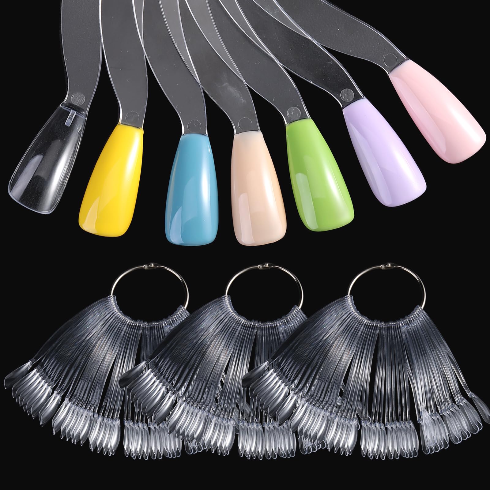 150 barras transparentes para muestras de uñas con anillo, puntas de arte de uñas en forma de abanico, palitos de muestra de uñas