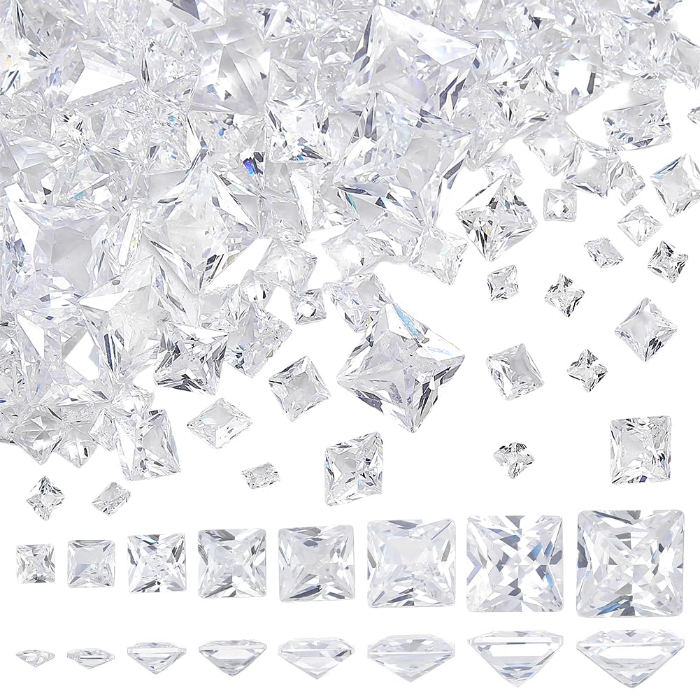 FINGERINSPIRE 314Pcs 8 Size Clear Cubic Zirconia Faceted Rhinestone Cabochons, Square Faceted Rhinestone Synthetic Gemstone with P