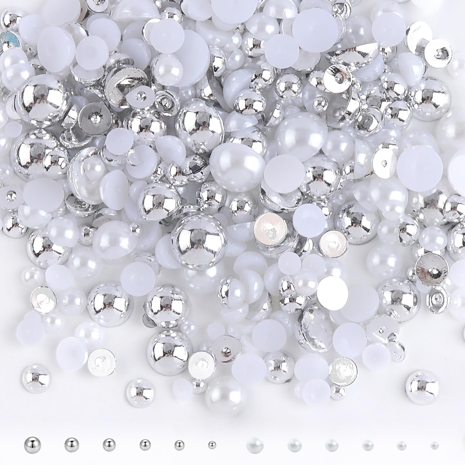 Flatback Pearls for Crafts,40g Half Round Pearl Flatback Imitation Pearls for Crafts 3/4/5/6/8/10mm Mixsize Flat Back Pearl for Na