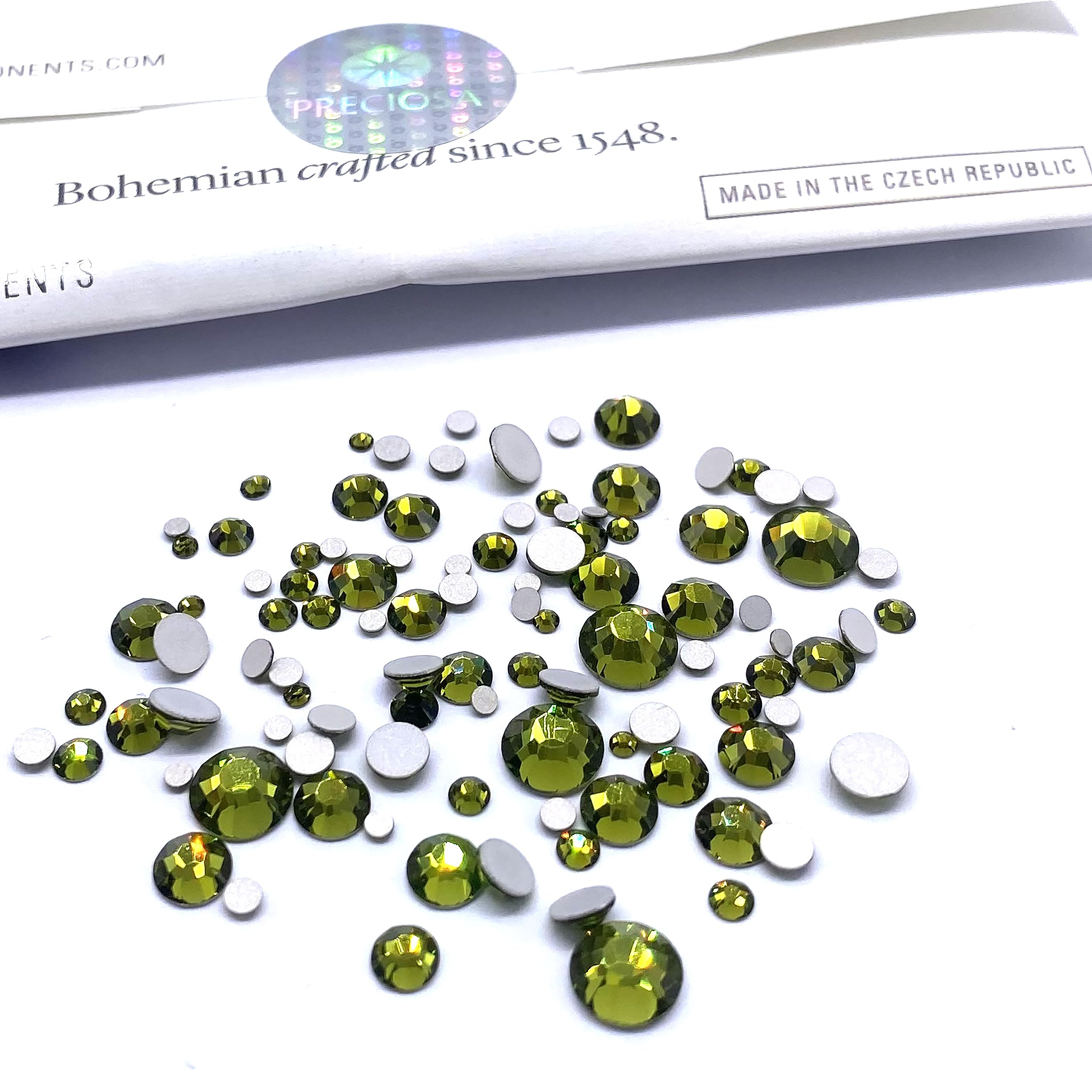 Tamaños mixtos verde olivino caqui checa Preciosa Maxima Crystal Flatbacks 100 piezas surtidos 0.079 in a 0.236 in ss5, ss7, ss9,