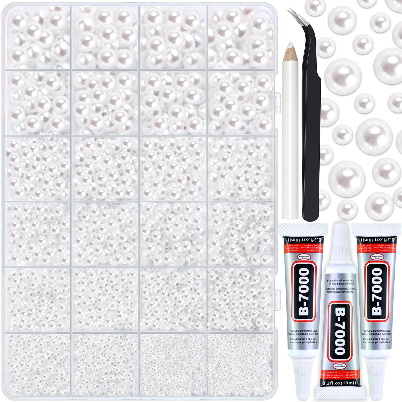 10000 perlas blancas con parte trasera plana, mixtas de 0.079 in, 0.118 in, 0.157 in, 0.197 in, 0.236 in, 0.315 in y 0.394 in, med