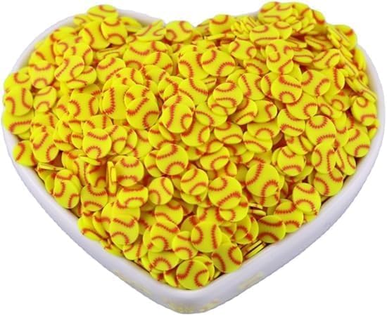 Rodajas de arcilla polimérica amarilla de sóftbol de 0.39 oz (0.197 in), manualidades y decoración de uñas, slime de sóftbol, arci