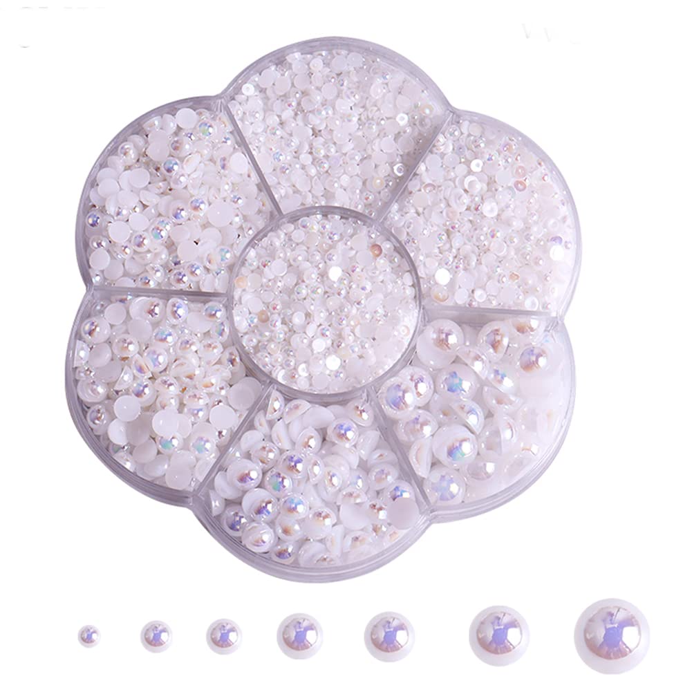 5700 medias perlas AB para manualidades y arte de uñas, perlas planas para maquillaje y accesorios de bricolaje, color blanco, 2/3