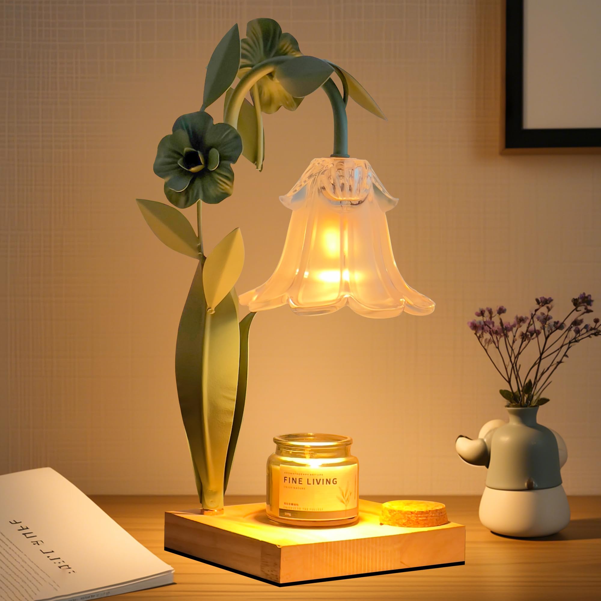 Lámpara calentadora de velas con temporizador, luz nocturna de fusión de velas vintage, calentador de velas de altura ajustable, d