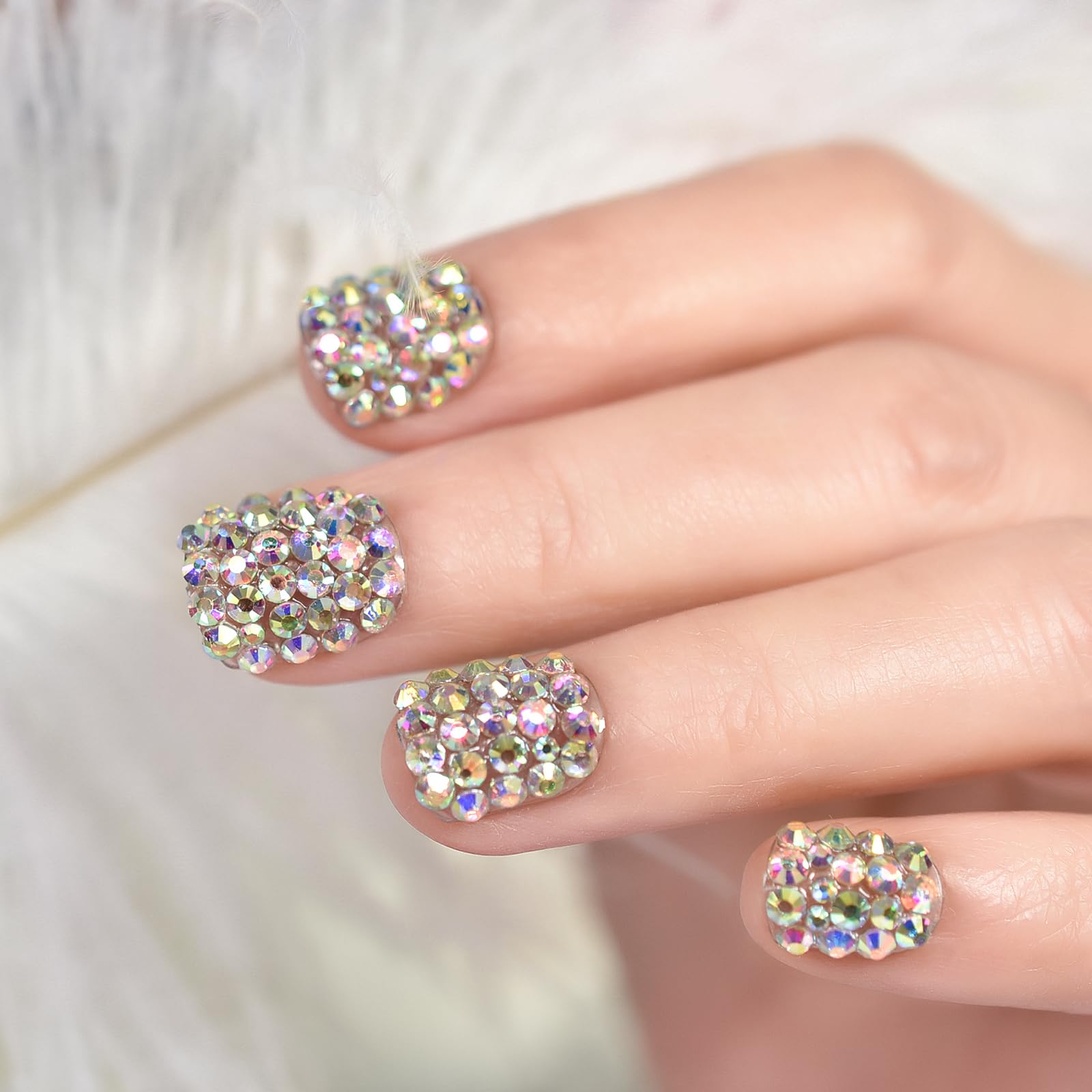 Uñas postizas a presión hechas a mano, 24 piezas de diamantes de imitación 3D, uñas cuadradas cortas, para mujeres y niñas, regalo