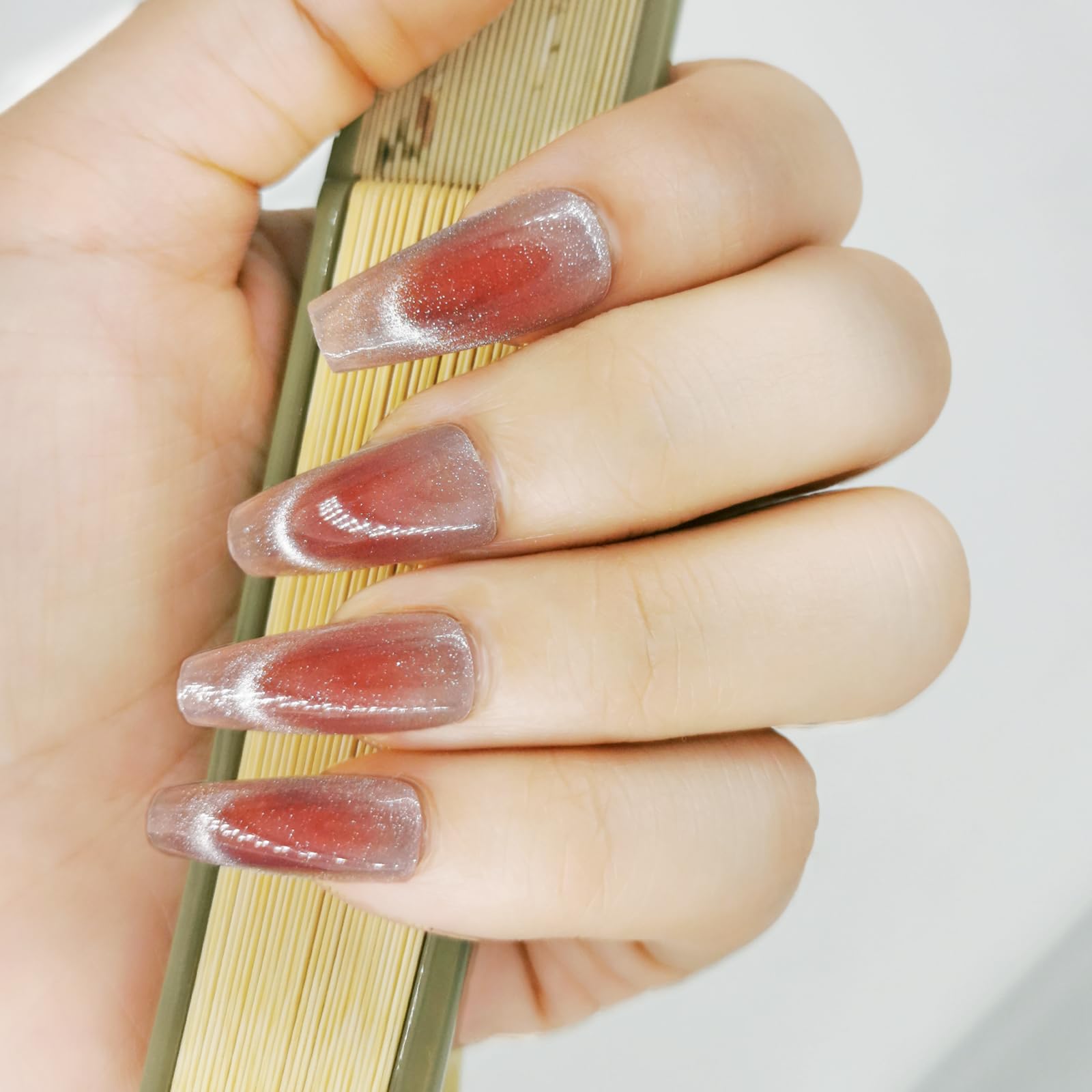 Uñas postizas a presión con diseño de ojo de gato, color rojo, 5 estilos de uñas cortas cuadradas, uñas postizas de gel suave, uña