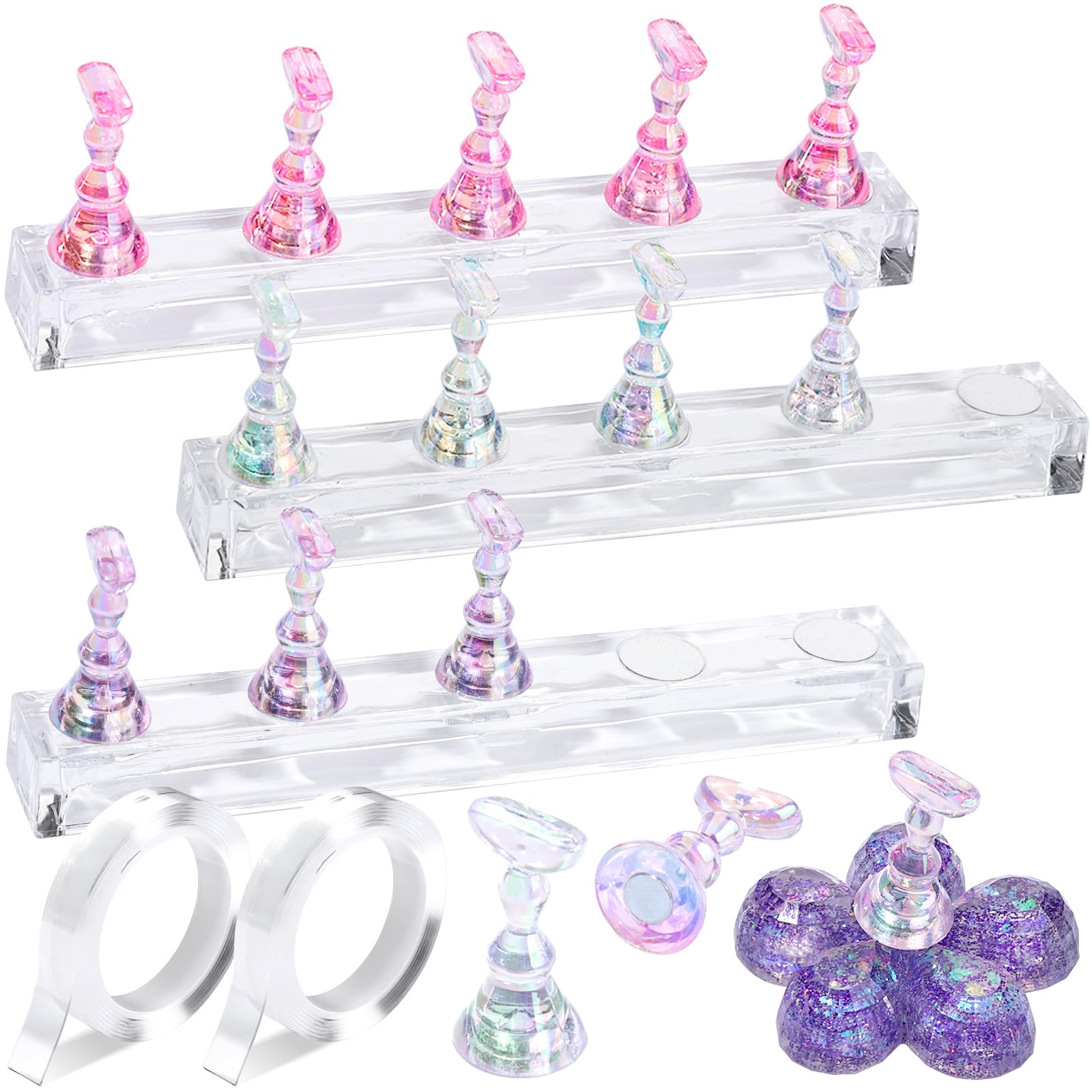 Fandamei Soporte de uñas, 3 juegos de soporte de uñas para prensar, soporte de uñas para pintar uñas, soporte de uñas a presión pa